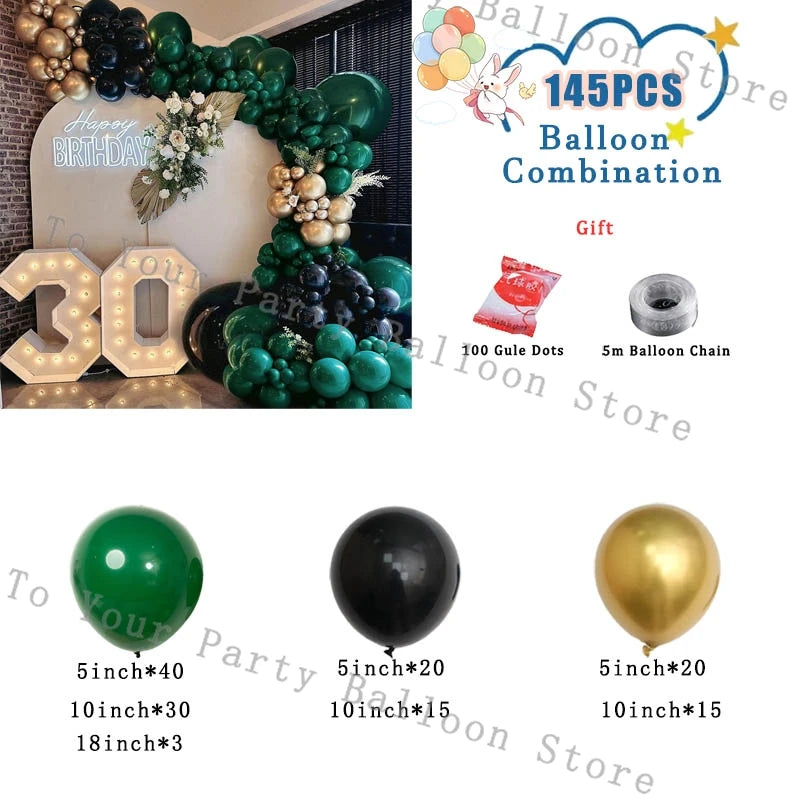 Dark Green Balloon Garland Arch Kit Wedding Birthday Party Decor Black Golden Latex Balloon Anniversary Graduation Prom Decor