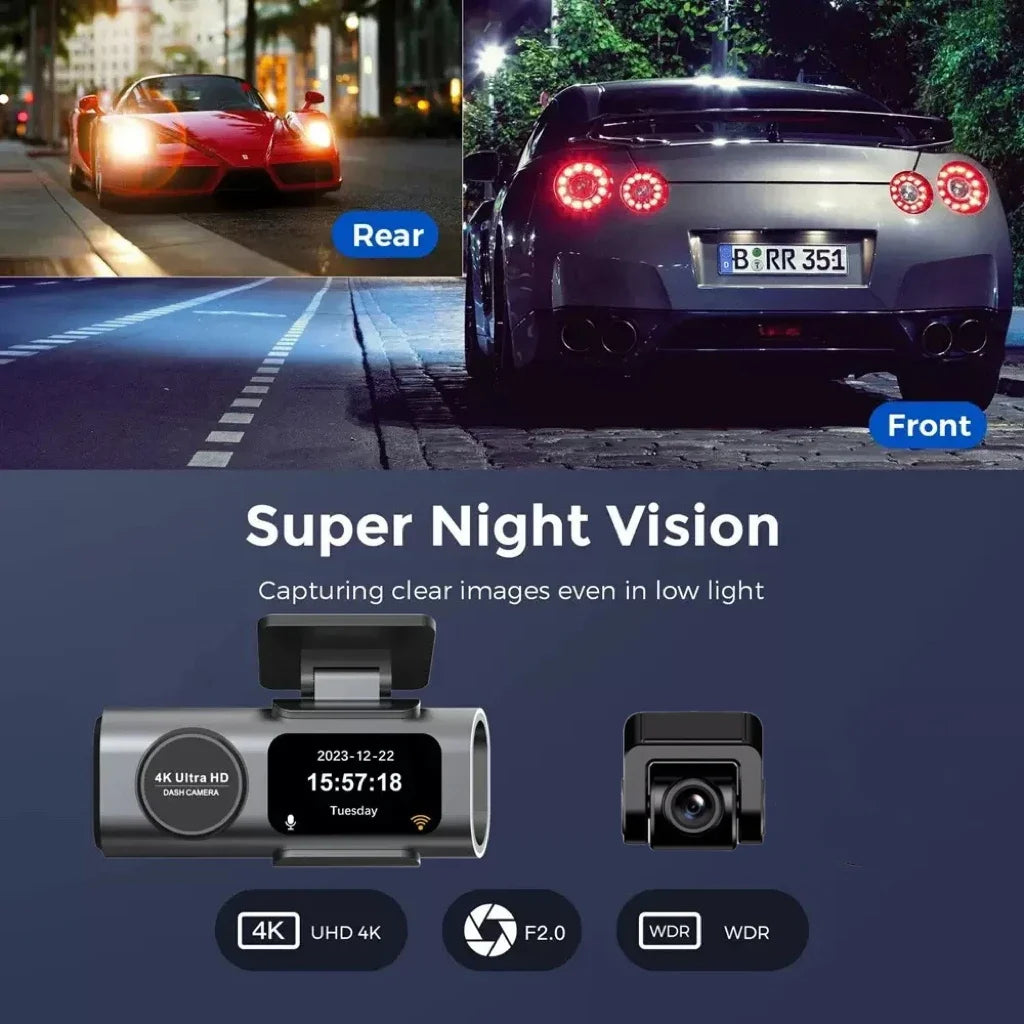 Dash Cam Dual Lens - DVR Night Vision Built-In Wi-Fi Support