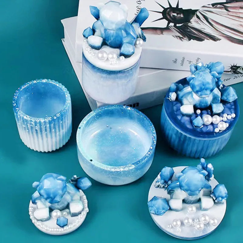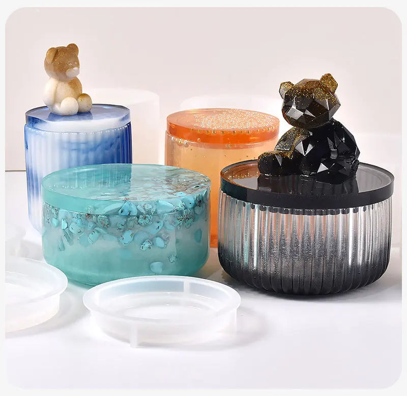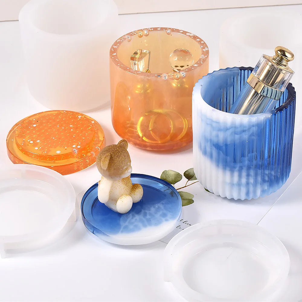 DIY Crystal Epoxy Resin Mold High Mirror Round Storage Bottle Stripe Jewelry Box Container Silicone Molds For Aromatherapy