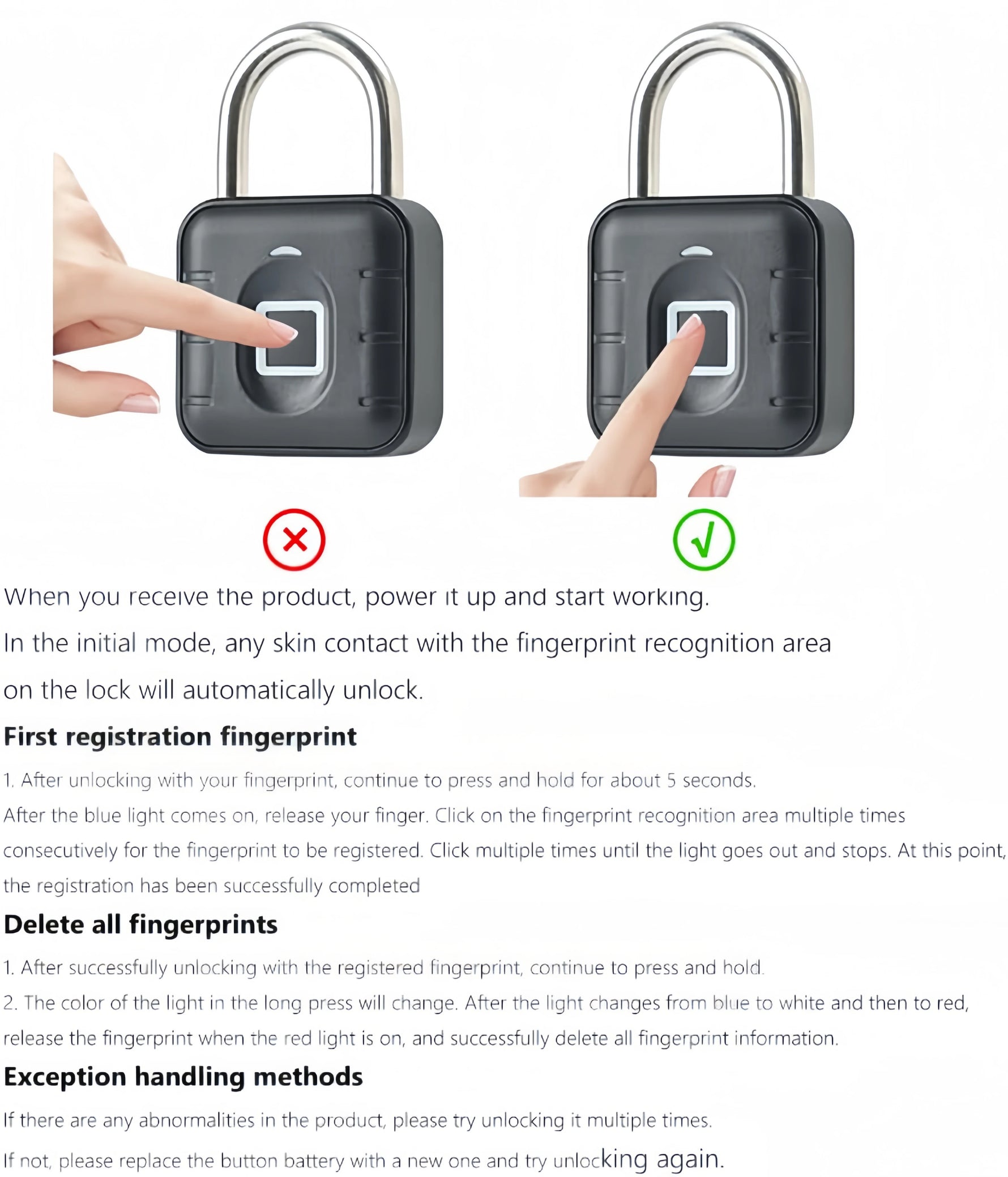 2. If not support Tuya APP, set up the fingerprint/ password follow the user manual