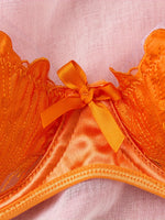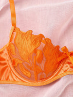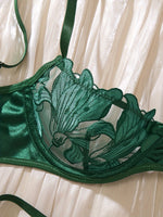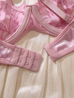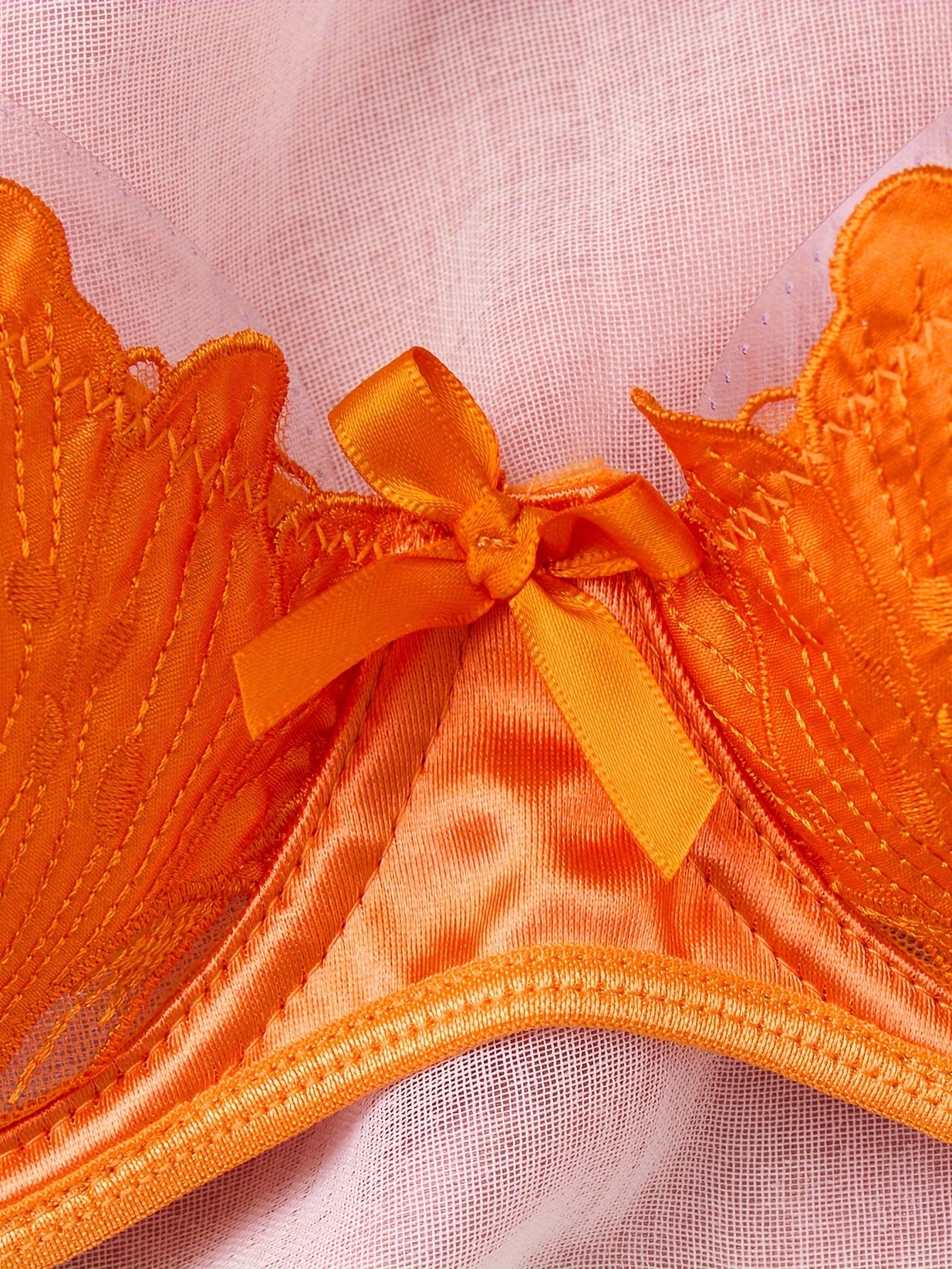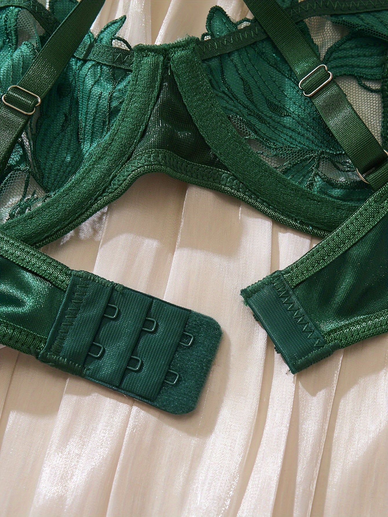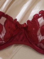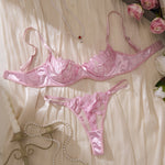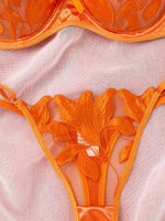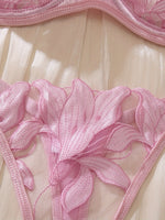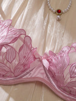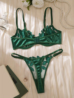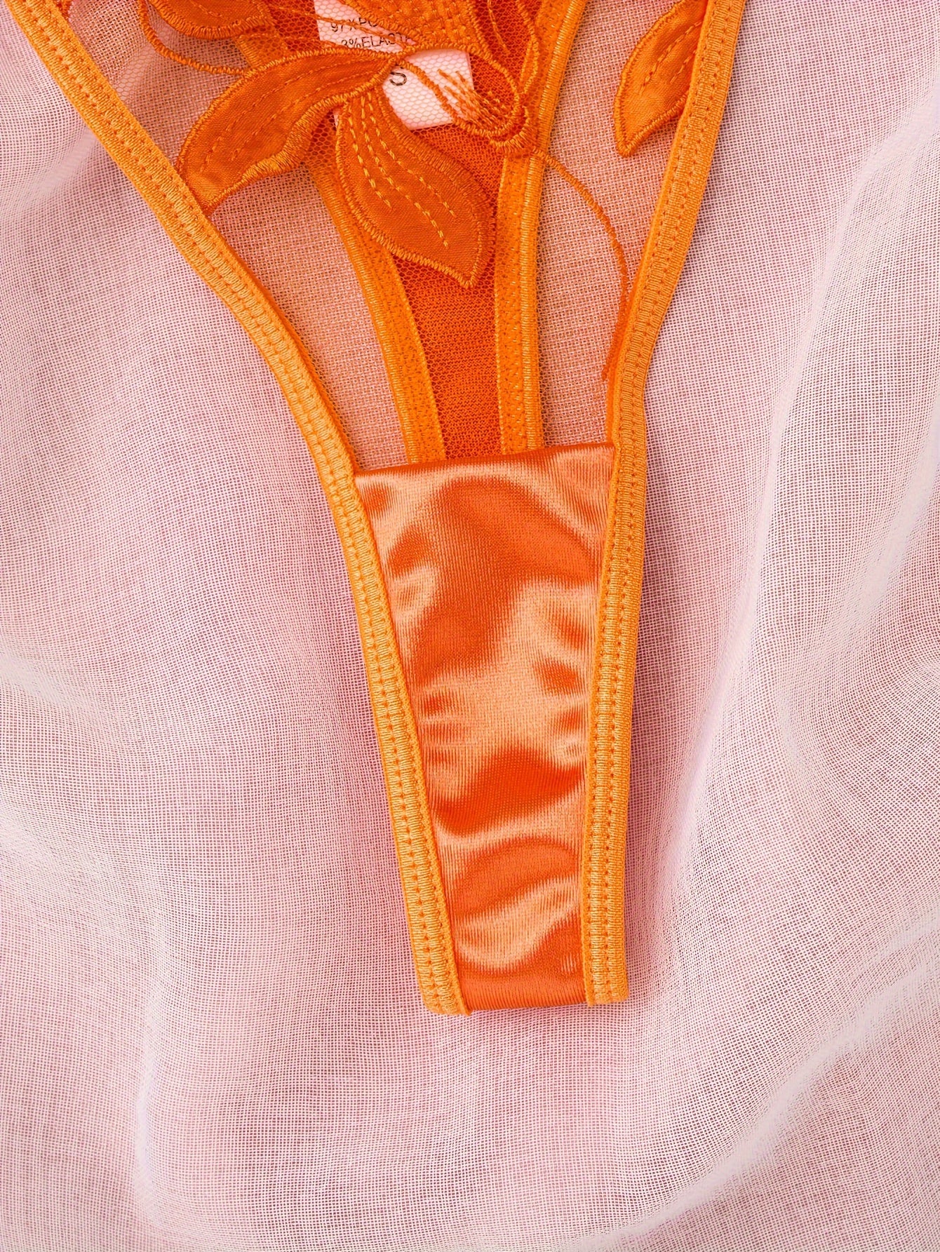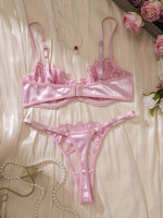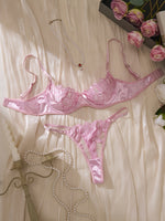 Elegant Floral Embroidered Lingerie Set for Women - Sexy Sheer Bra and Thong Panty, No Padding, Medium Support Knit Fabric Undergarment Set with Polyester and Elastane