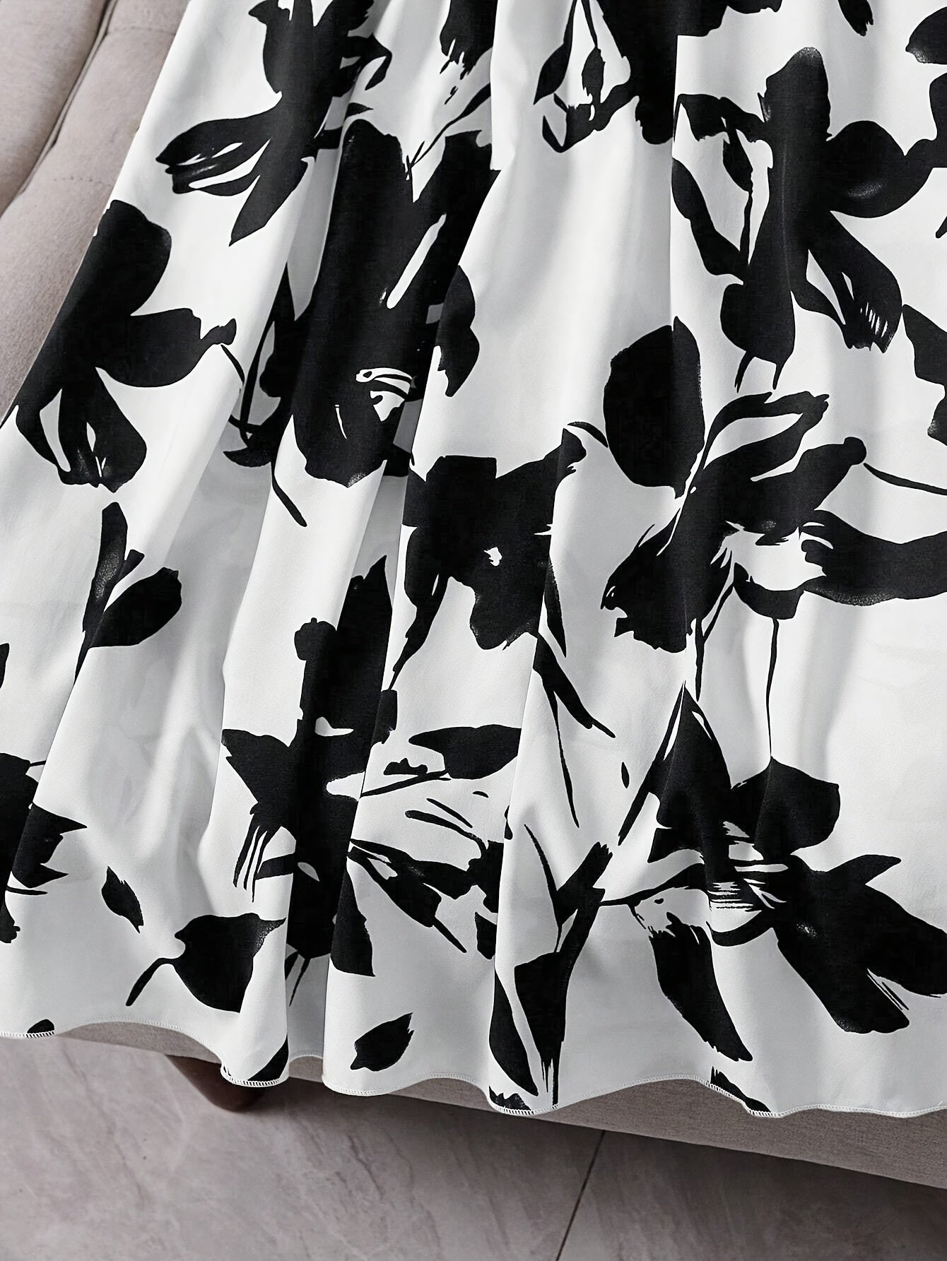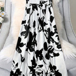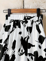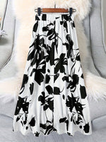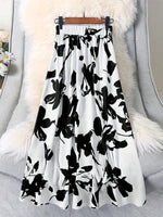 Elegant Floral Print Women's Skirt - High-Waisted, Flowy Design with Black Flowers on White Background, Polyester Blend, Machine Washable, Perfect for Spring & Fall