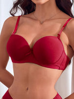 Elegant Women's Sets of Solid Color Lingerie Deep V Bow Design Comfortable Skin-friendly Bra and Panties Two Piece Set