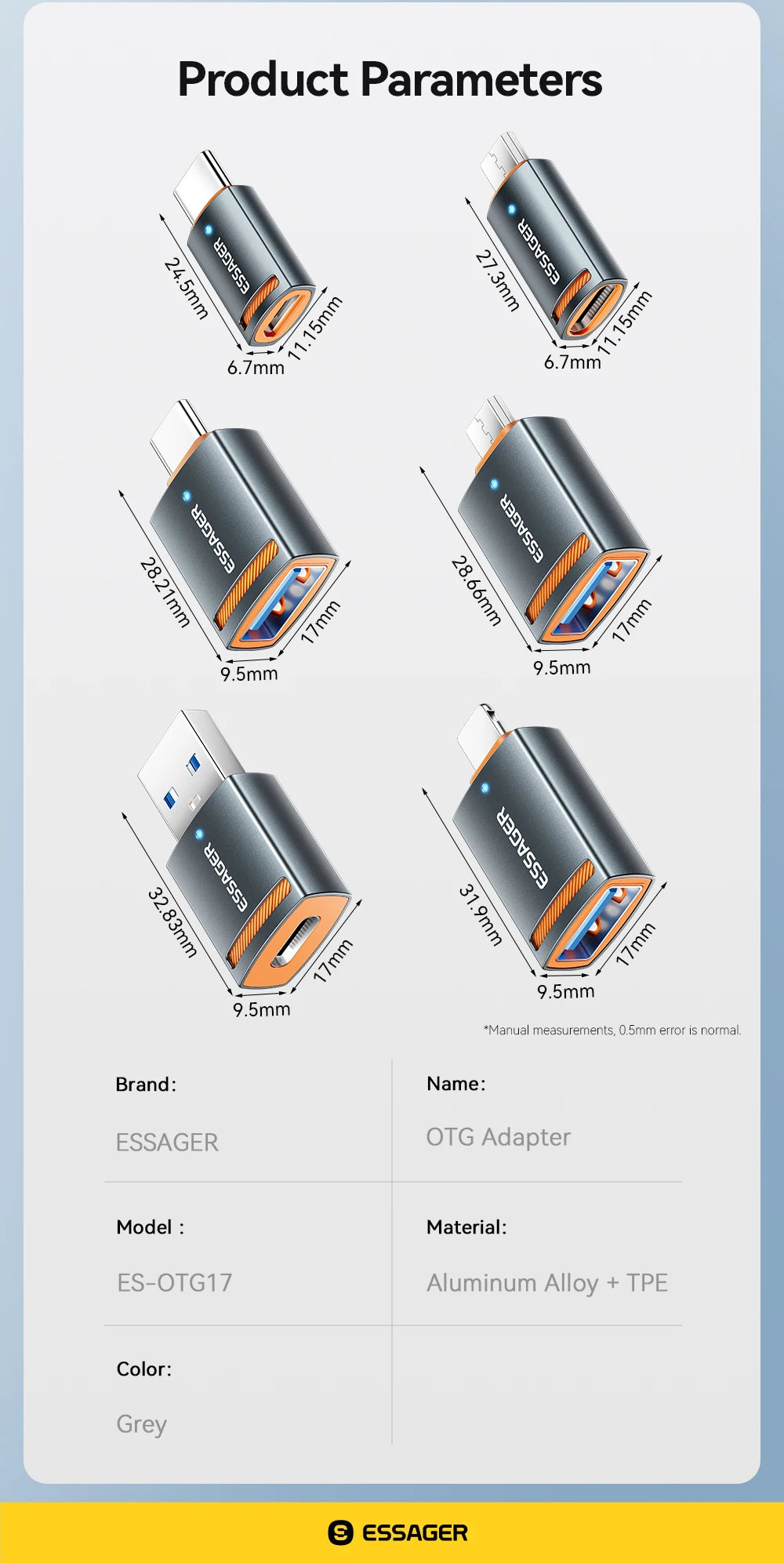 Essager USB3.0 OTG Adapter Type-C USB-A Micro Female to USB Micro iP Type-C Male