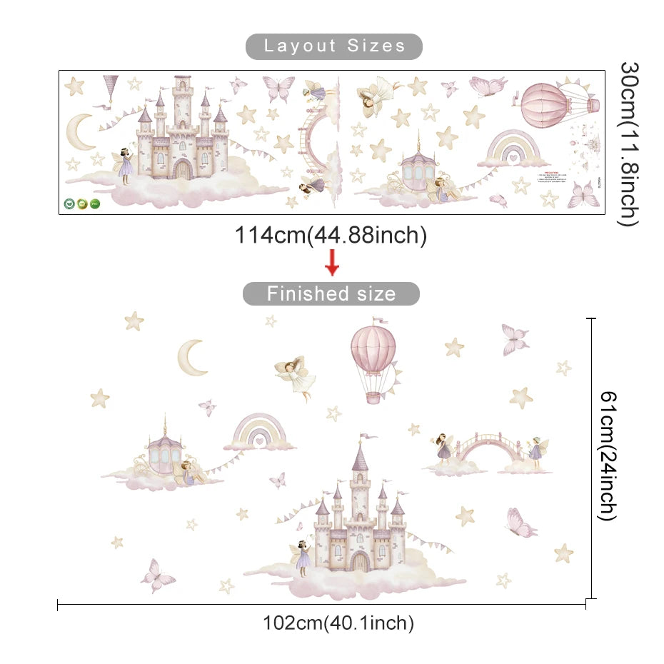 Fairy Wall Decals Elf Moon Clouds Wall Stickers Peel and Stick Art Decor for Girls Bedroom Baby Nursery Kids Toddler Playroom