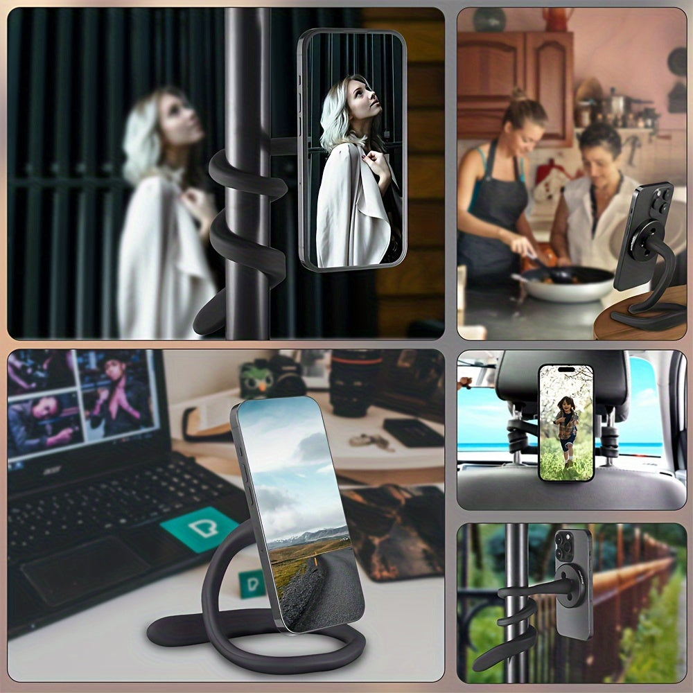 Flexible Magnetic Phone Holder with Gooseneck Arm - 41.91cm Long, Non-Slip Silicone Grip, Adjustable & Portable - Compatible with iPhone 15/14/13/12/11 Pro Max Plus Mini & Samsung - Ideal for Treadmills, Bikes, Wheelchairs, T