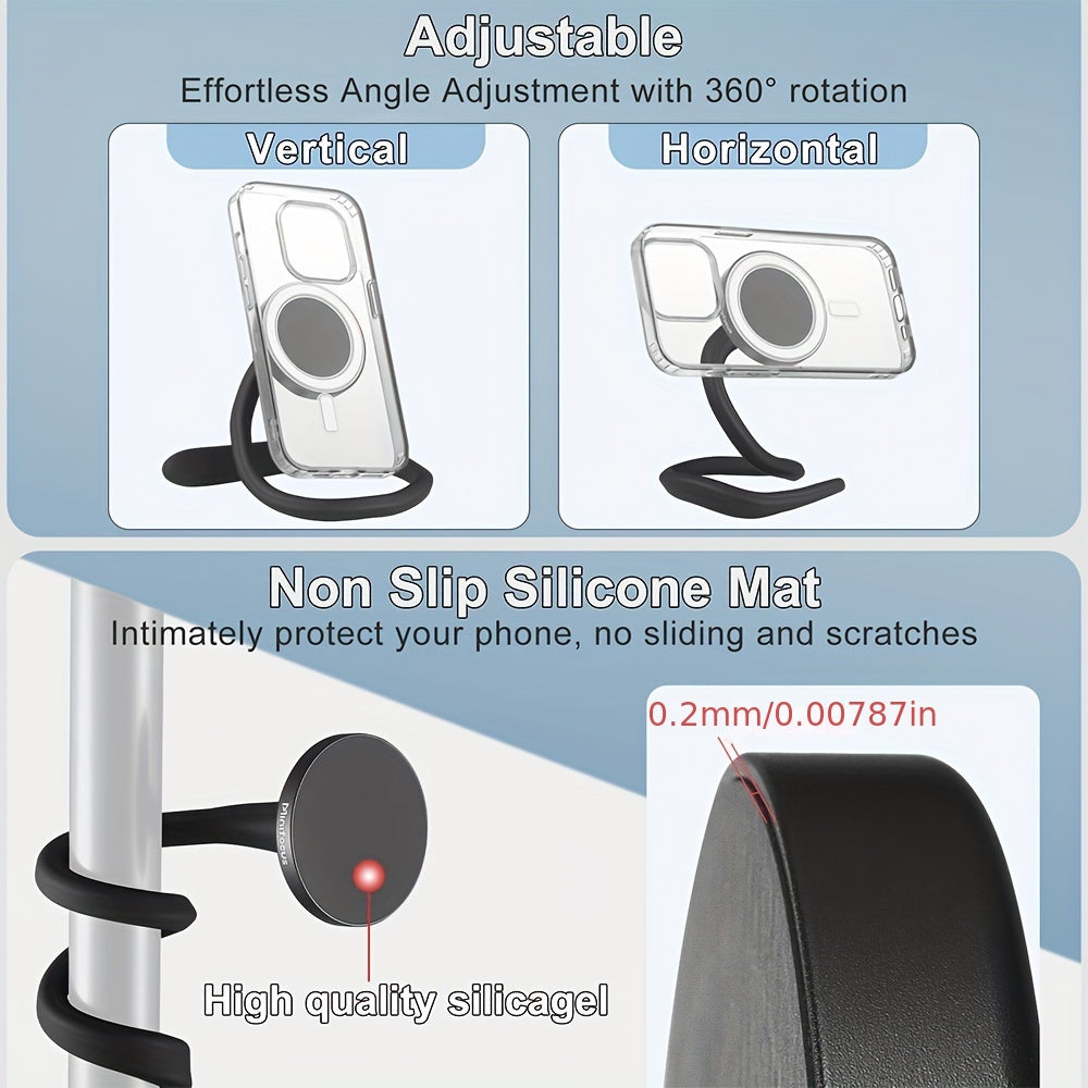1.Smooth Material: The wrapable silicone rod has a soft touch, fine texture, and a smooth surface; When winding or holding it, it can be grasped well and will not fall easily; There is a 1/4" screw interface on the top, which can be connected to camera, etc (Paage comes with a magnetic phone mount Connector, two metal ring)