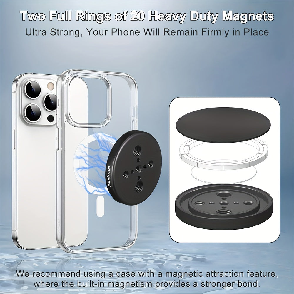 3.Upgrade Magnet: Iindividuals powerful magnetic attraction provides a firm grip (Max Magnetic Load: 21 oz/600 g), keeping your device stable and preventing accidental slips or drops; The counter-slip grip face with specially designed high quality silicone allows stable non-slip mounting and will not hurt your phone at all