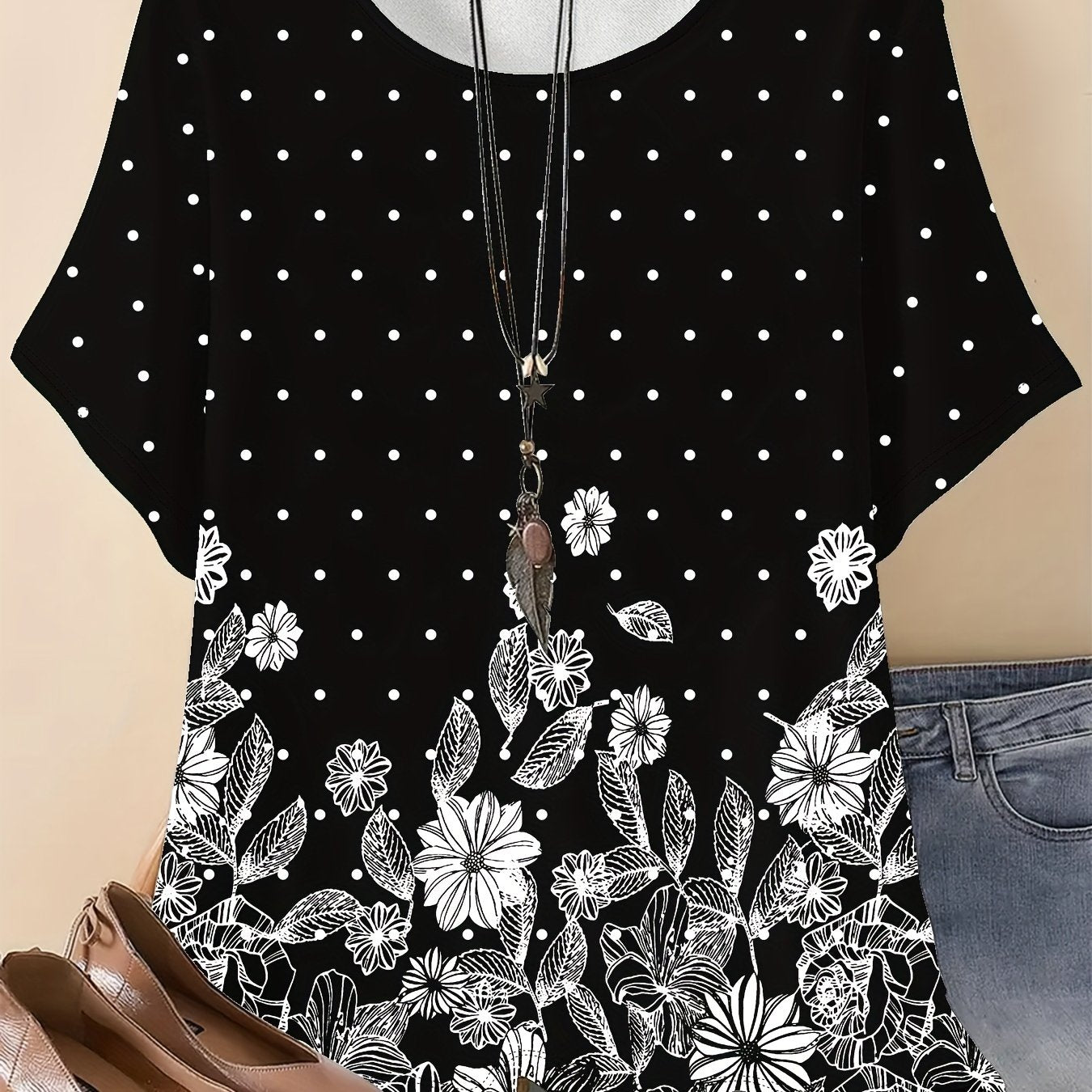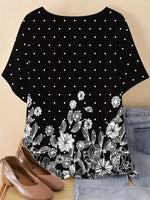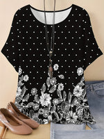Floral Print Crew Neck T-Shirt, Casual Short Sleeve Top for Spring & Summer, Women's Clothing
