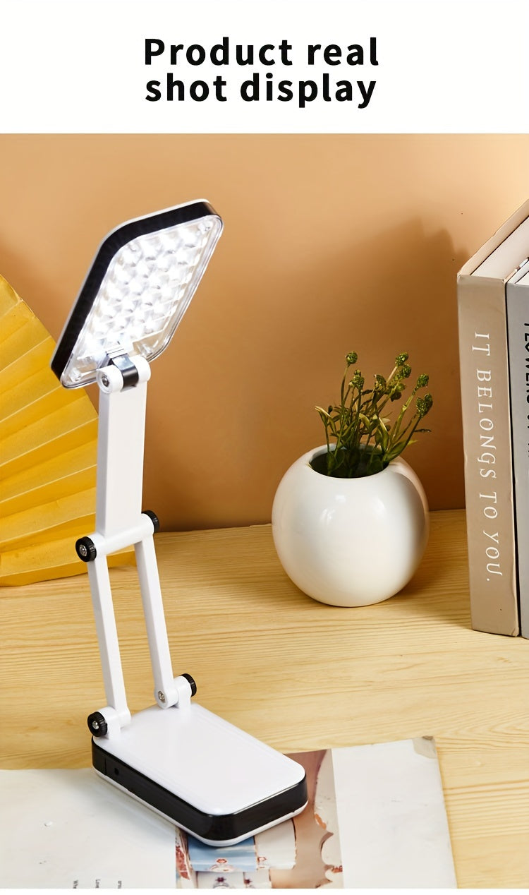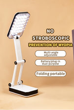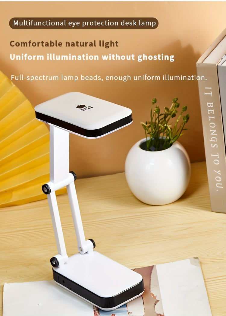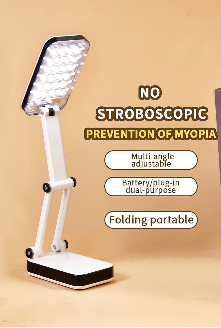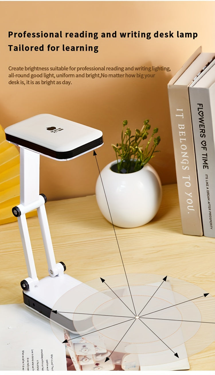 Foldable LED Desk Lamp with Eye Protection, Dual Power Source (Battery/USB), Adjustable Brightness, White, Ideal for Students, Dorm Rooms, and Bedside Reading, Desk Lamps for Home Office
