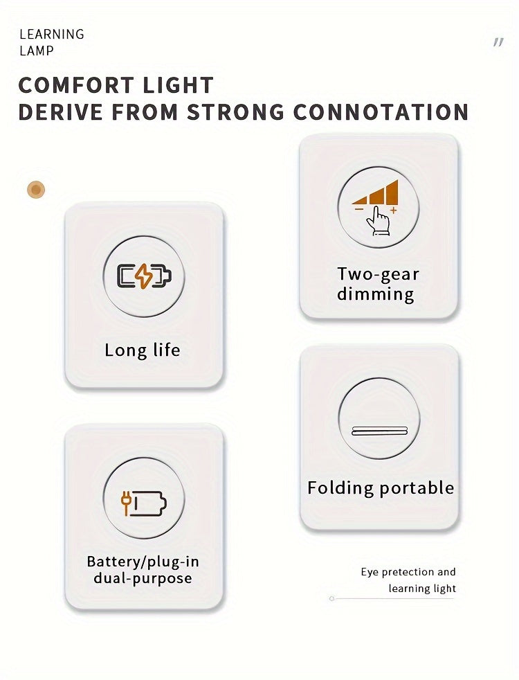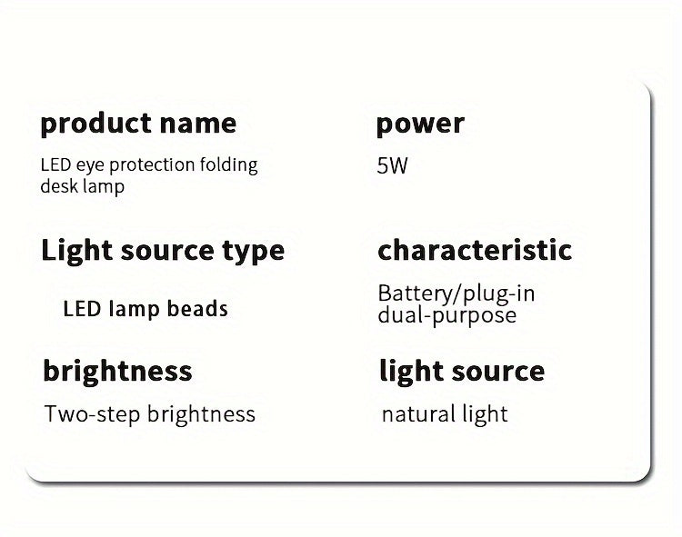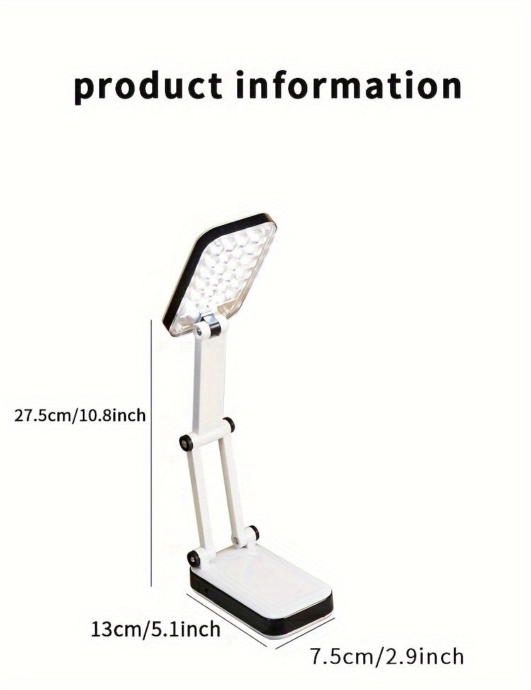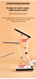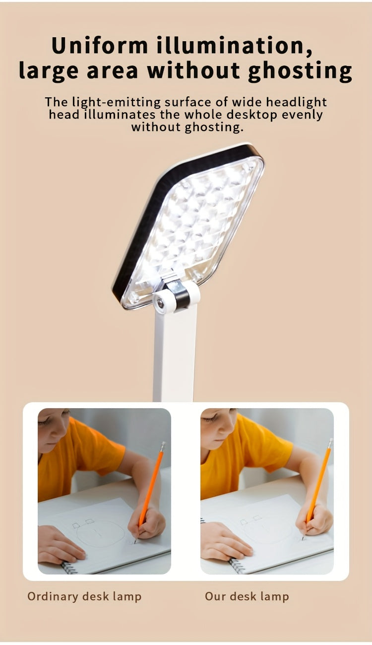 Foldable LED Desk Lamp with Eye Protection, Dual Power Source (Battery/USB), Adjustable Brightness, White, Ideal for Students, Dorm Rooms, and Bedside Reading, Desk Lamps for Home Office