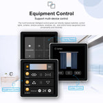 The 4 Inch Scene Panel & 3 Gang Switch 2 in 1 has a wealth of device control entrances and is compatible with Tuya ecological platform.It can easily achieve precise control of smart devices such as lighting and curtains.