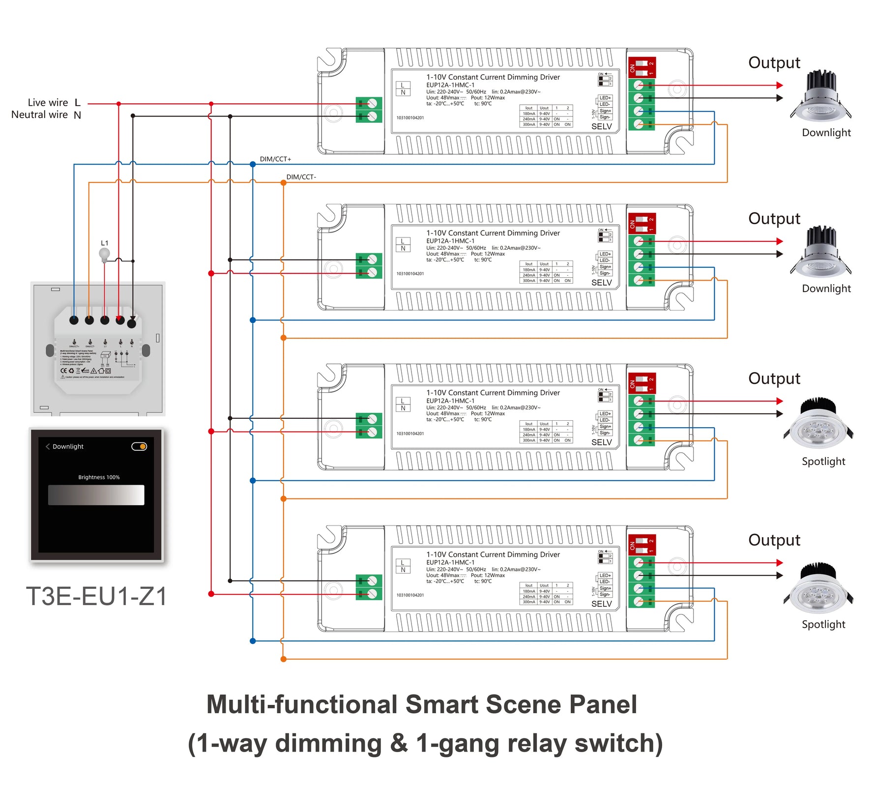 4 Inch Scene Panel & 3 Gang Relay Switch 2 in 1 connection to downlights,spotlights,light strips,etc.,intelligent control switch,can control and adjust light brightness,color temperature.