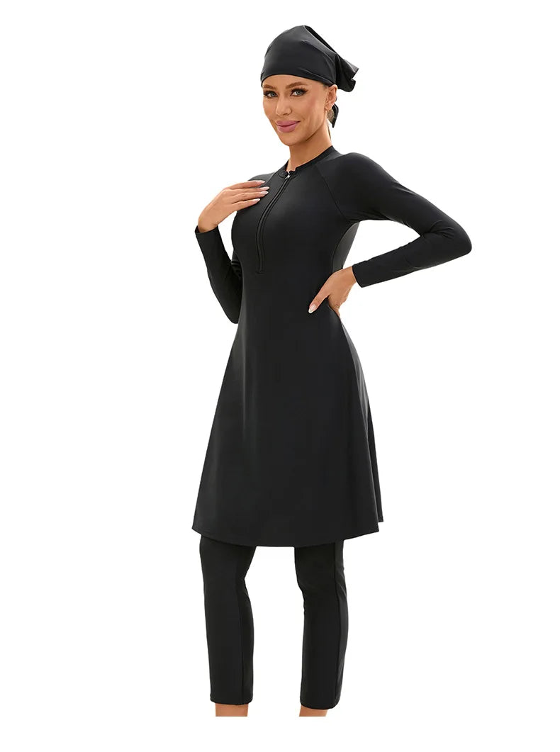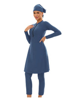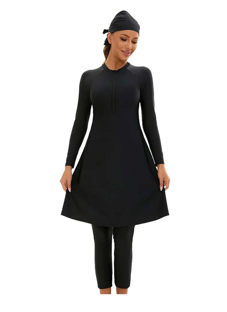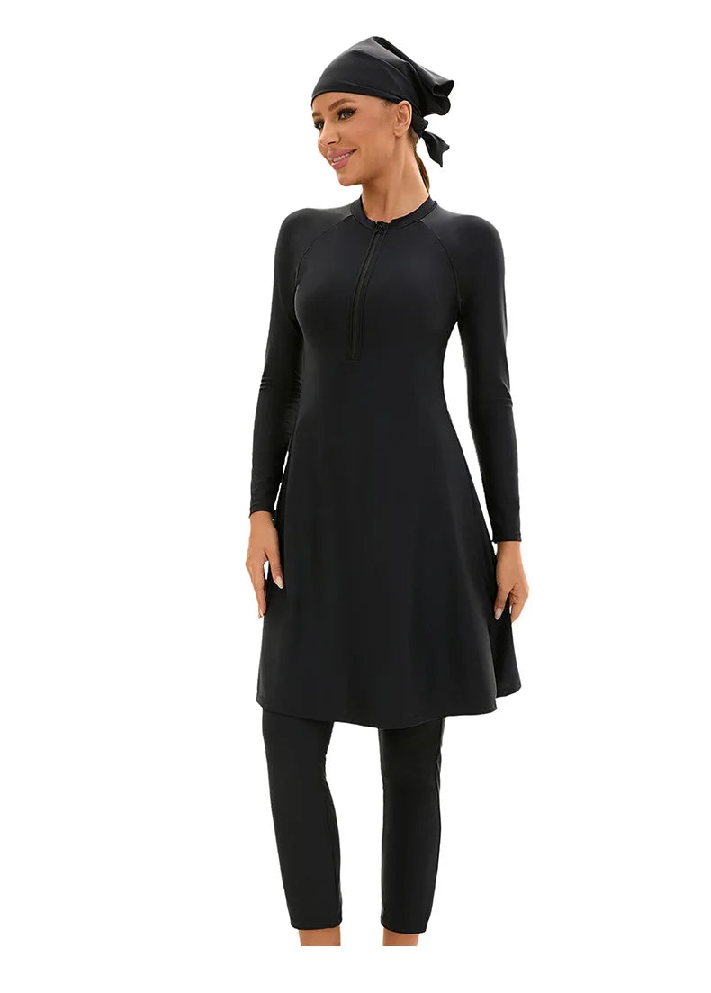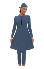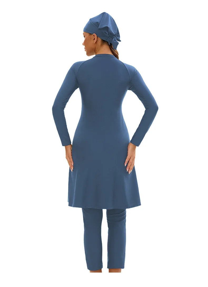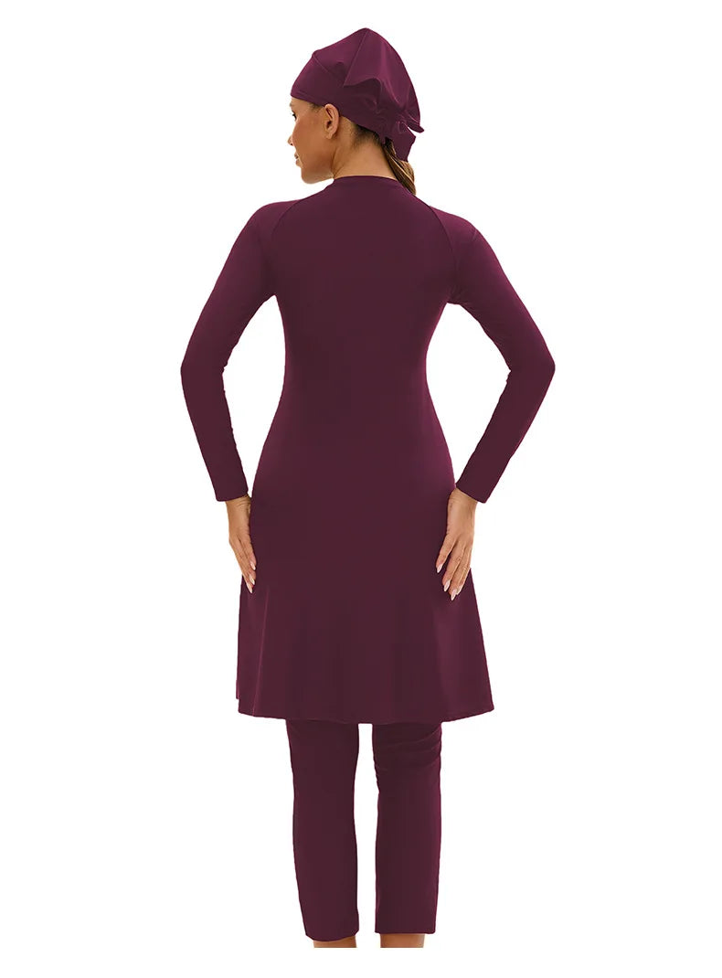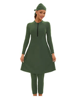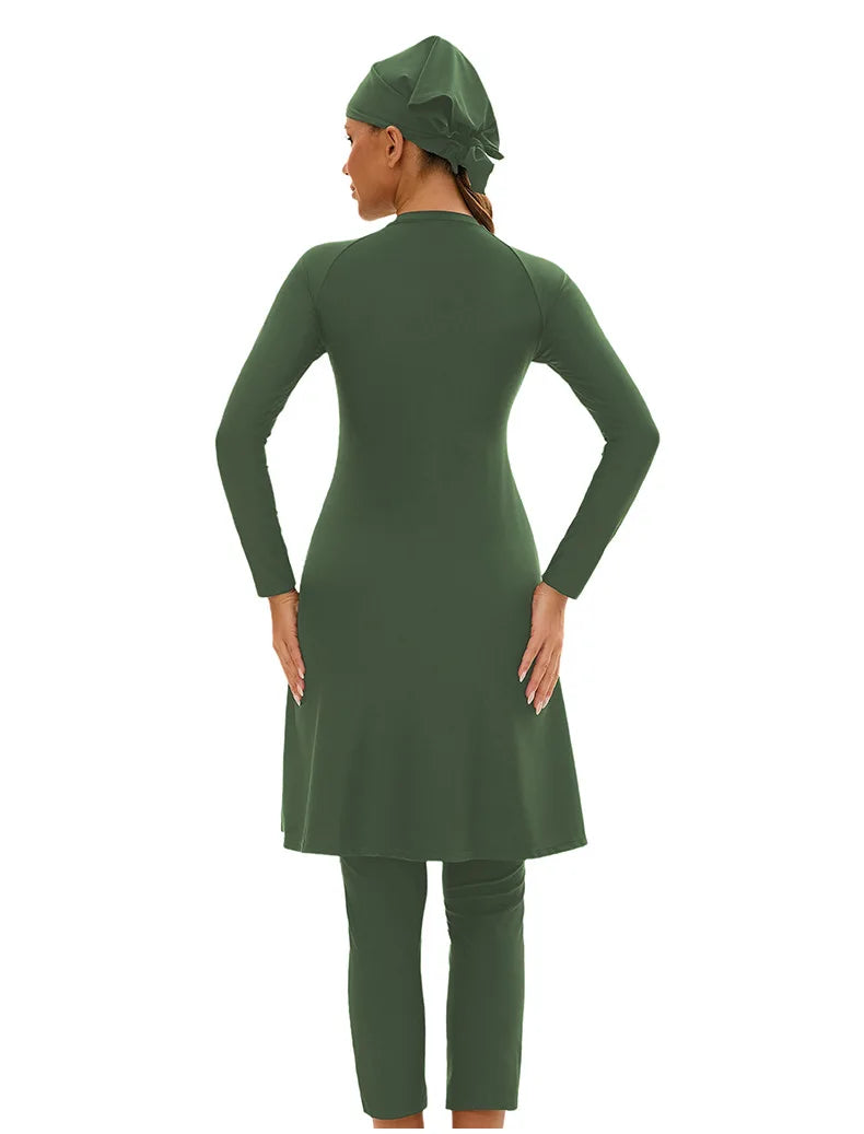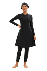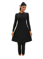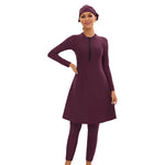 Fully Covered Swimsuits 3 Pieces Full Covered Burkini Swimwear with Swimming Cap Solid Swimwear
