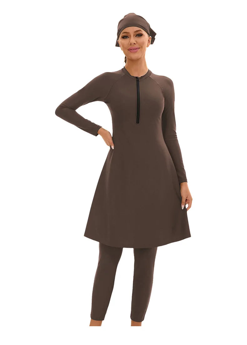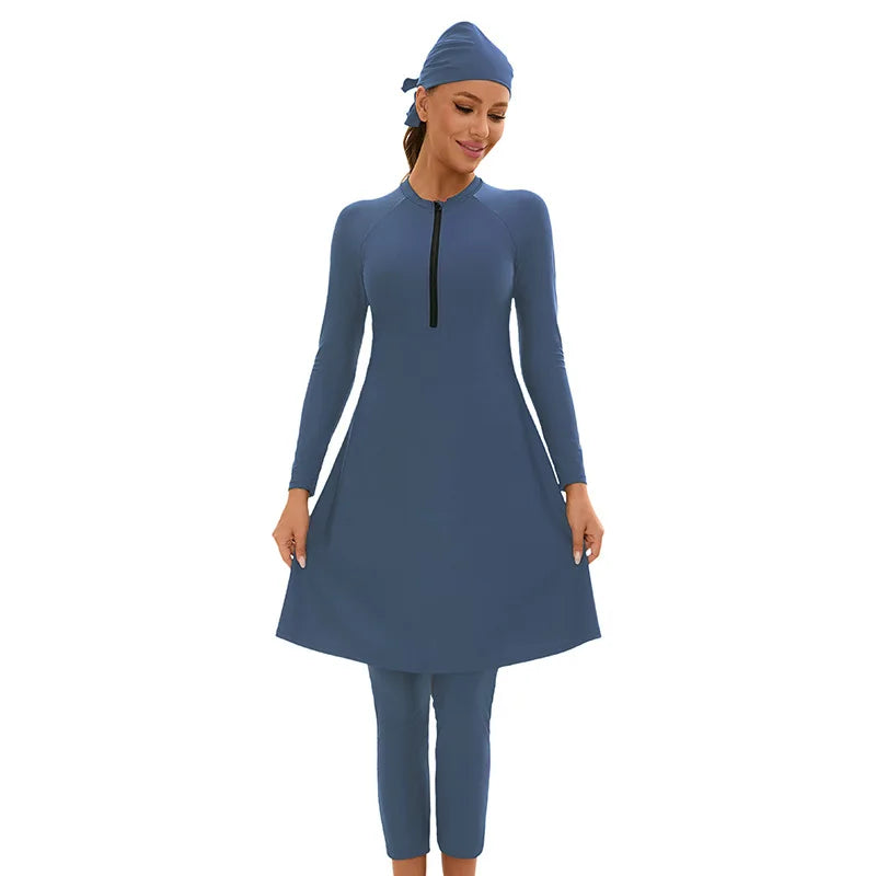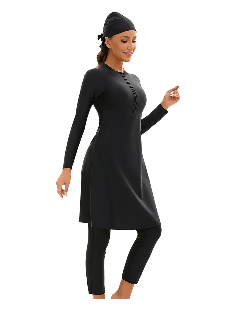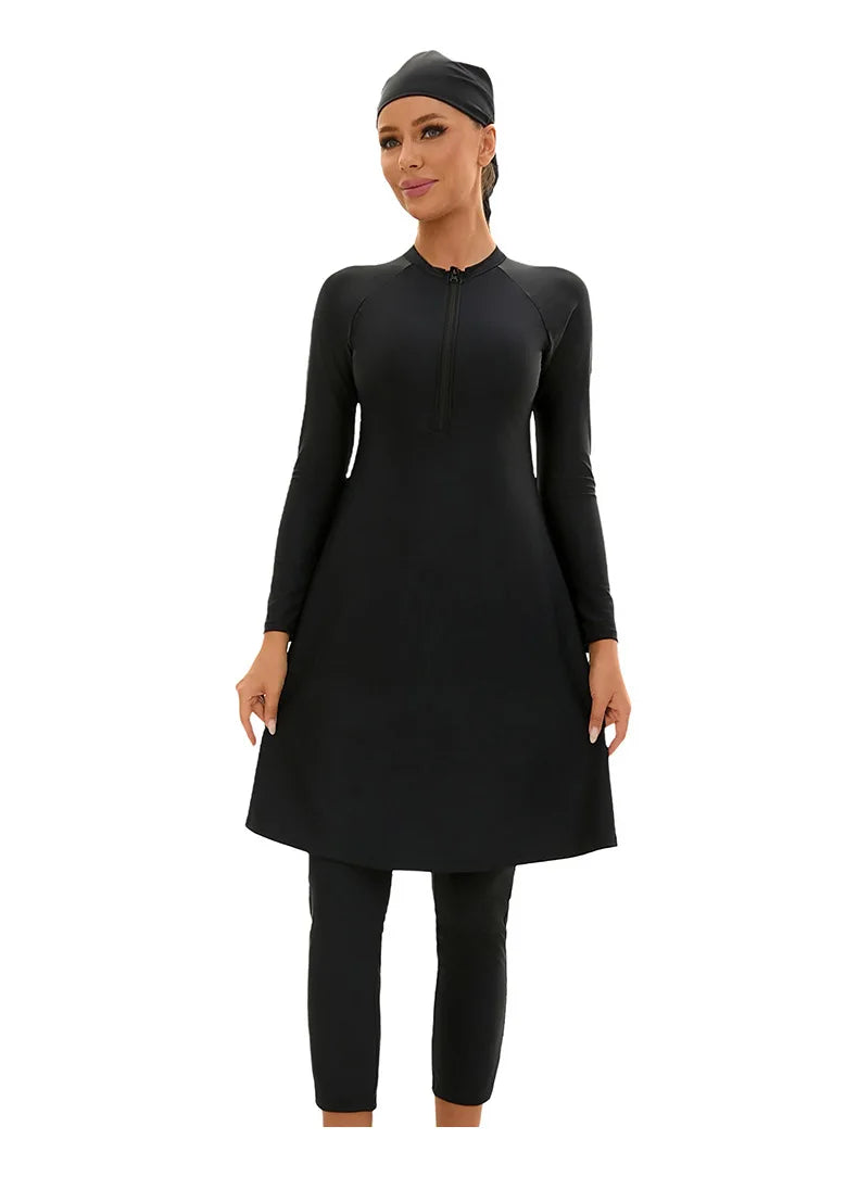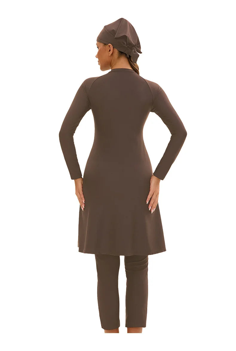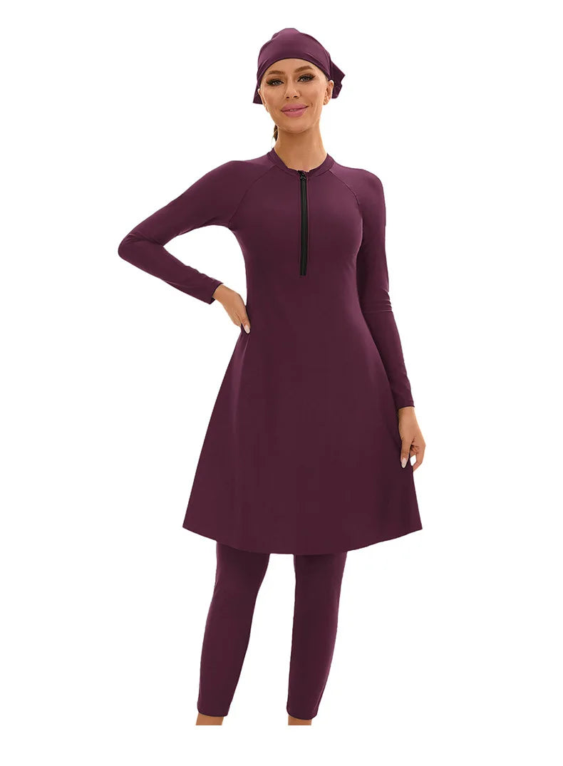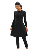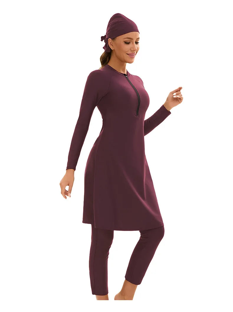 Fully Covered Swimsuits 3 Pieces Full Covered Burkini Swimwear with Swimming Cap Solid Swimwear