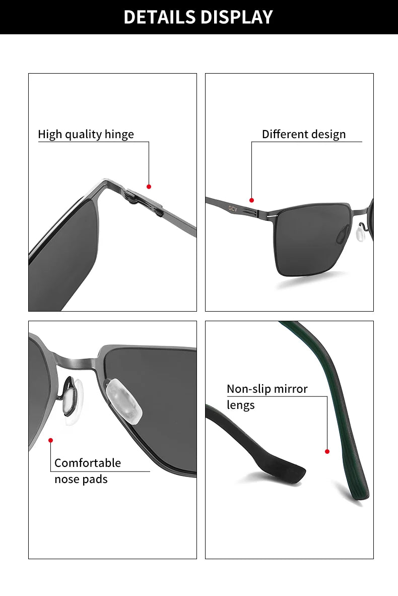 GCV Men Polarized Sunglasses Aluminum Magnesium Sun Glasses Driving Glasses Rectangle Shades For Men UV400