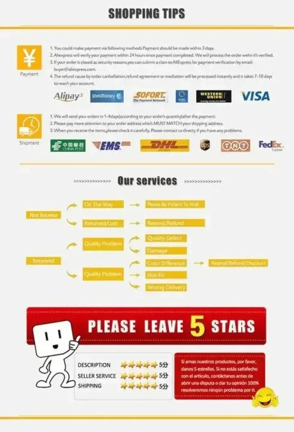 3. Si vous avez des questions, veuillez d'abord nous contacter, puis déposer un litige ou fournir des commentaires négatifs, nous ferons de notre mieux pour vous servir, merci.