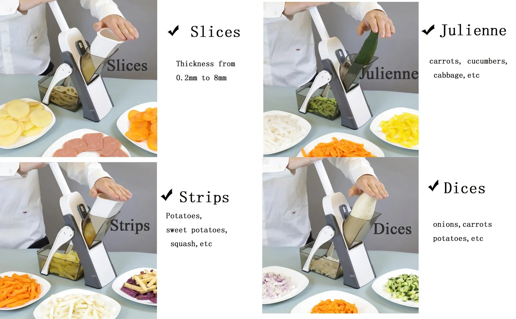 feature15: Multifunction Safe Food Slicer 5 in 1 Kitchen Vegetable Cutter Chopper