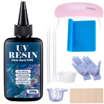 Hard UV Resin Glue Kit Fast Curing Epoxy Resin UV Glue with Mixing Tools for Starter Supplies for Art Craft Jewelry Making DIY