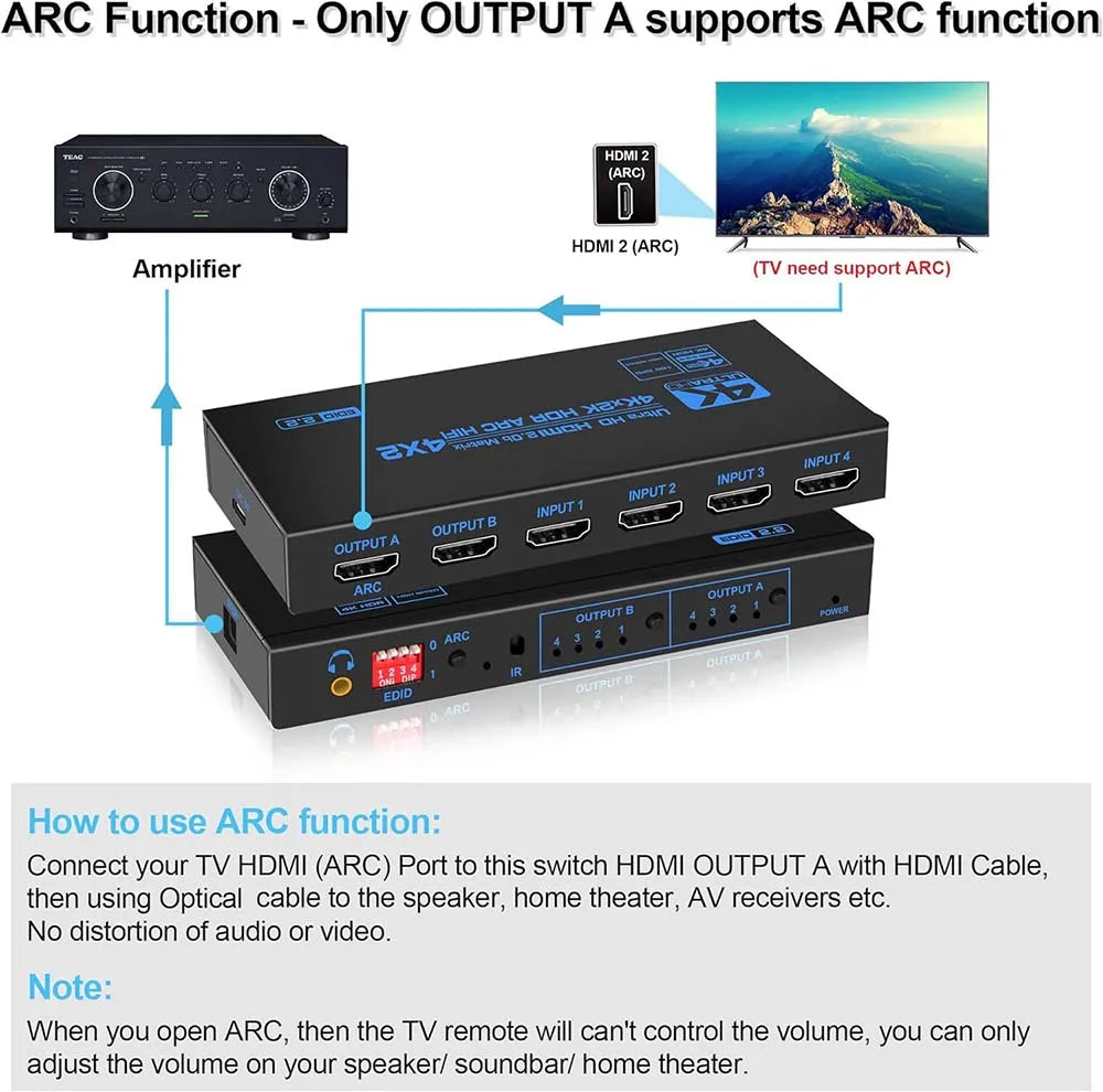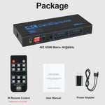 HDMI Matrix 4X2 with Audio 4K 60Hz HDMI 4 in 2 out Matrix Switch splitter HDCP 2.2 EDID Audio for PS4 Xbox DVD HDTV amplifier