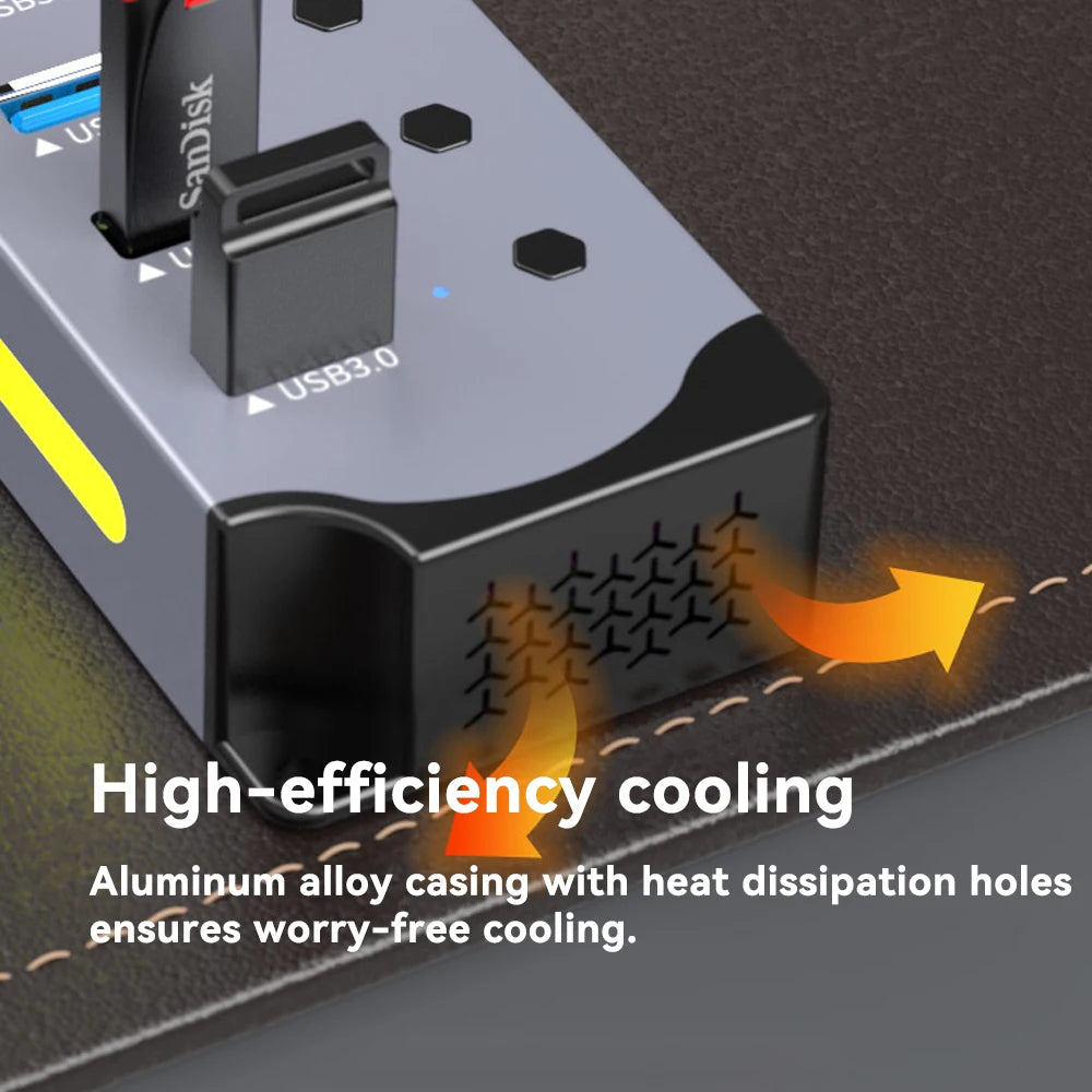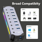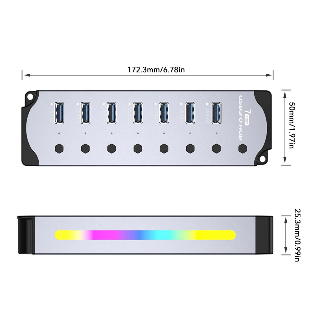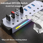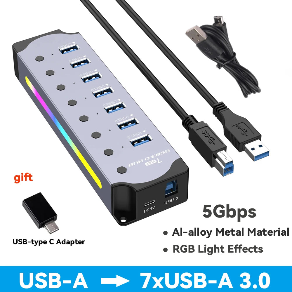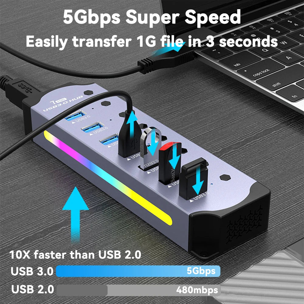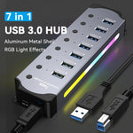 High Speed RGB 7 Ports USB 3.0 HUB Individual Switch 3.0 Adapter Multiport USB A Splitter Aluminum USB Hub For Computer Laptop