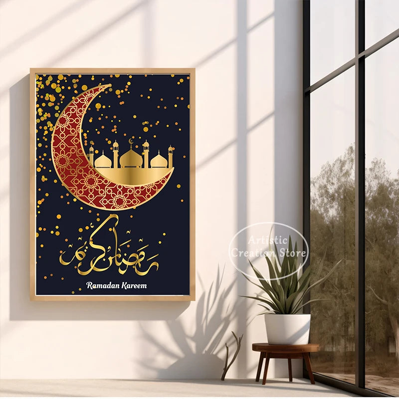 Islamic Art Posters Ramadan Mubarak Print Canvas Painting Modern Eid Mubarak Wall Picture Living Room Bedroom Home Decor Gifts
