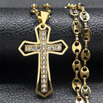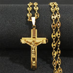Jesus Cross Crucifix Pendant Necklace for Men Stainless Steel Gold Color Christian Coffee Bean Chain Jewelry croix chrétienne
