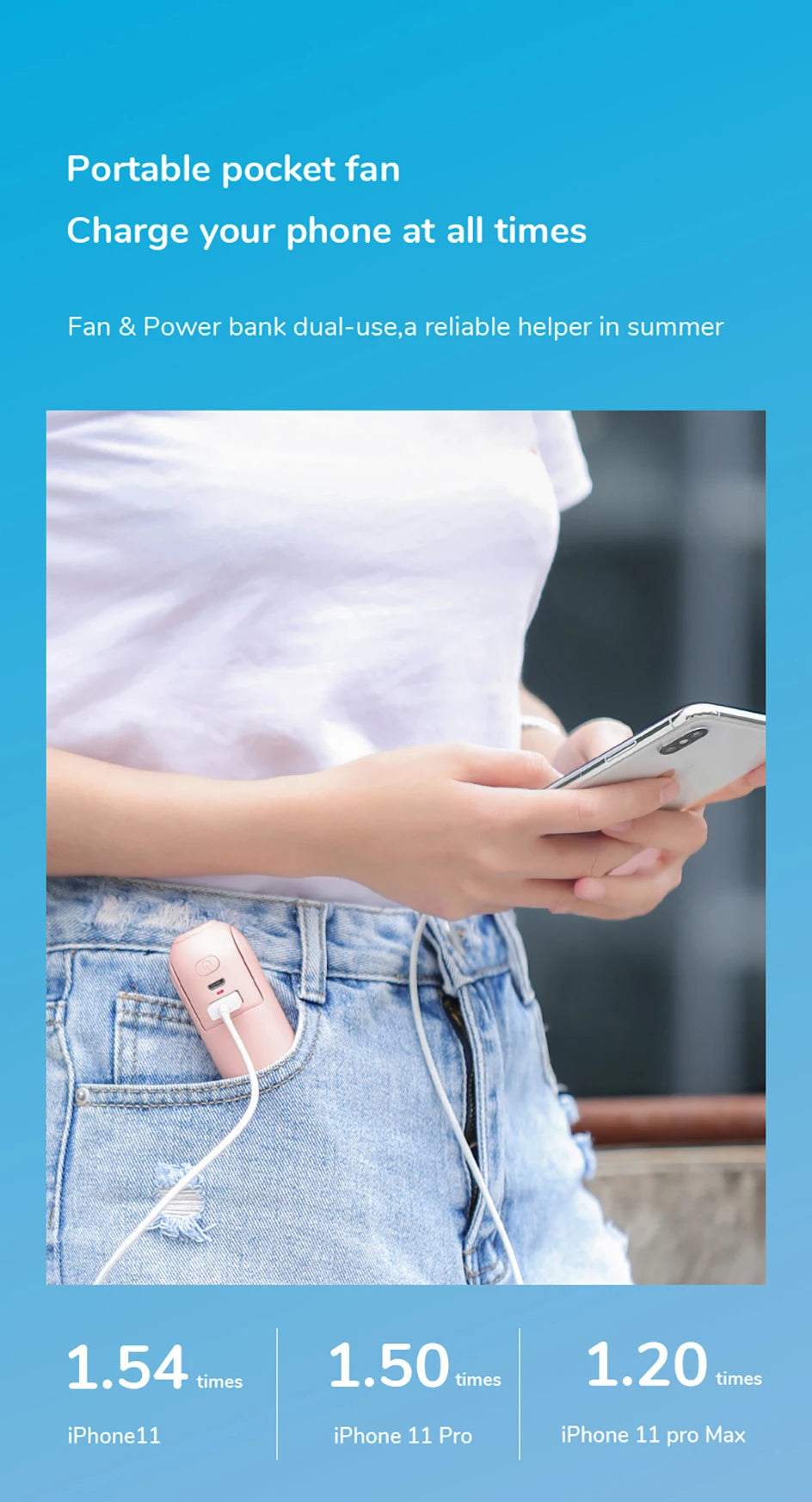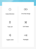 • More features: Combined with Fan + Flashlight + Backup Power Bank function.