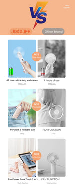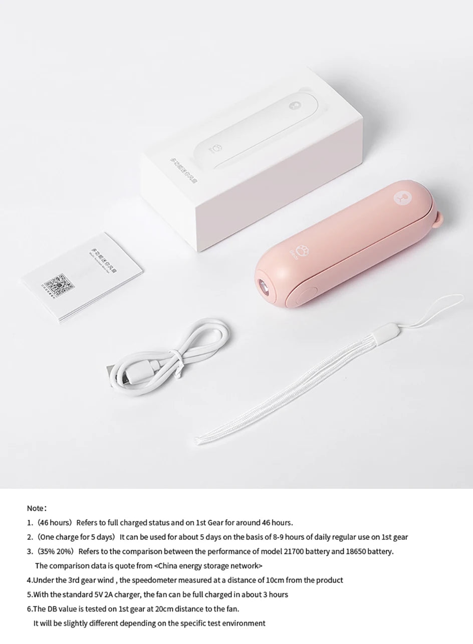 Features: Mini Handheld Fan with Flashlight and Power Bank Features