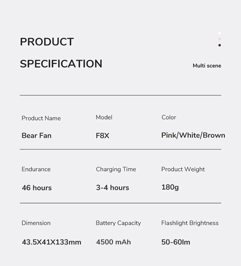 • JISULIFE pocket bear fan would be an everyday-carry-essential fan to cool you off in hot day and is multifunctional to satisfy your diverse needs.