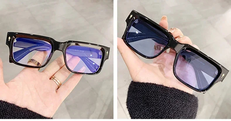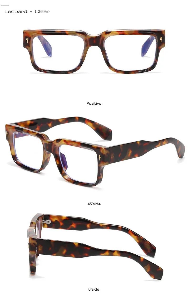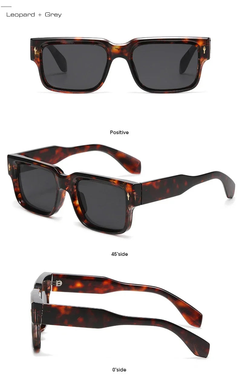 JNPCXI Retro Square Sunglasses Women Leopard Stripes Shades UV400 Fashion Rivets Men Clear Gradient Sun Glasses