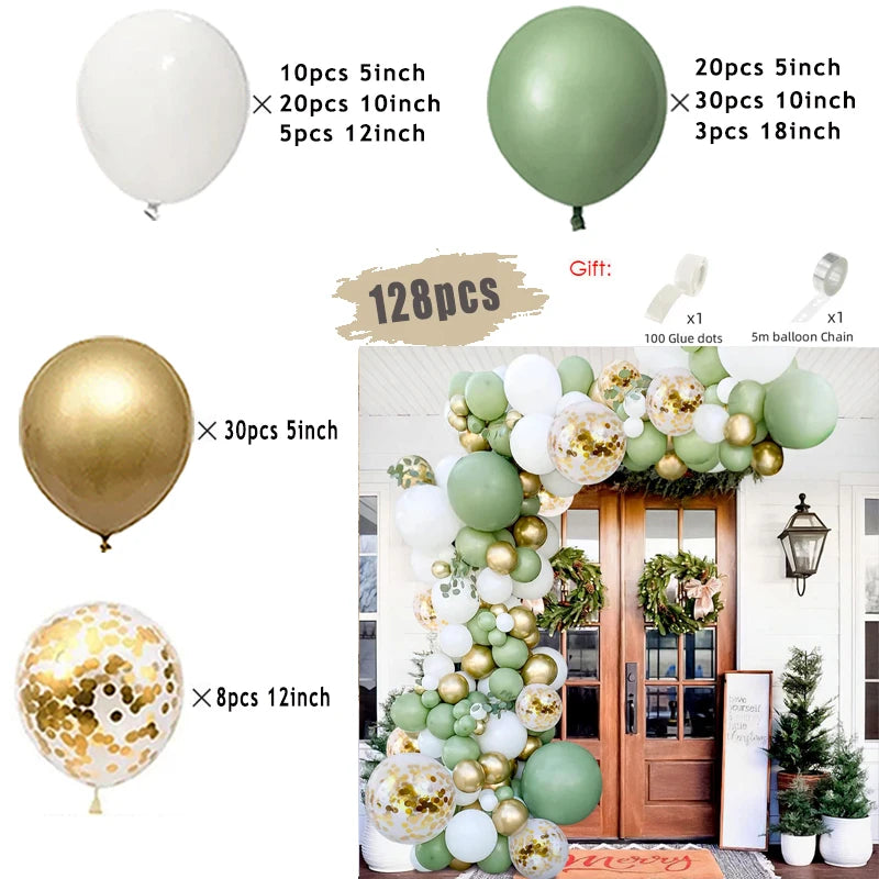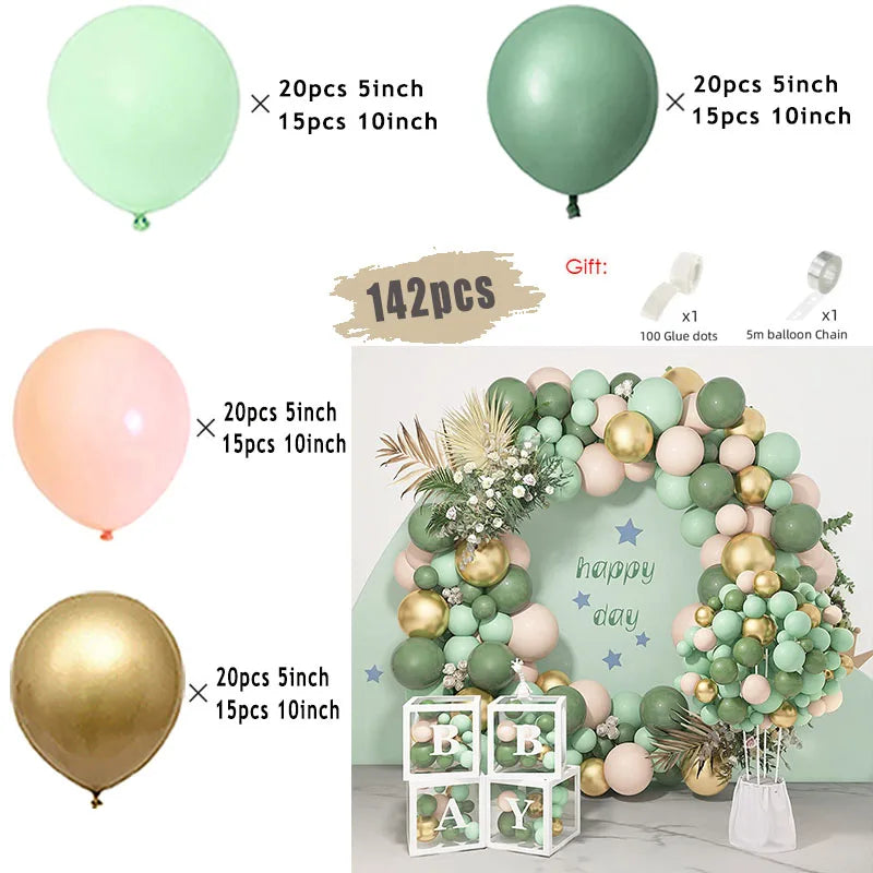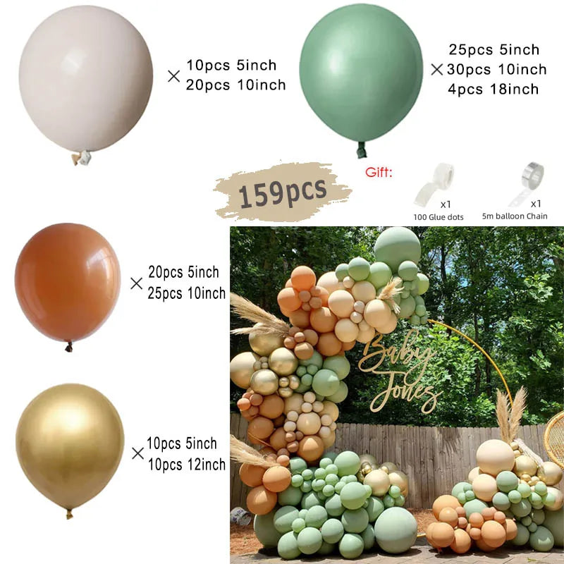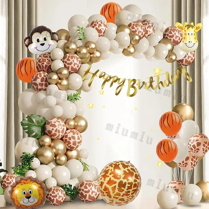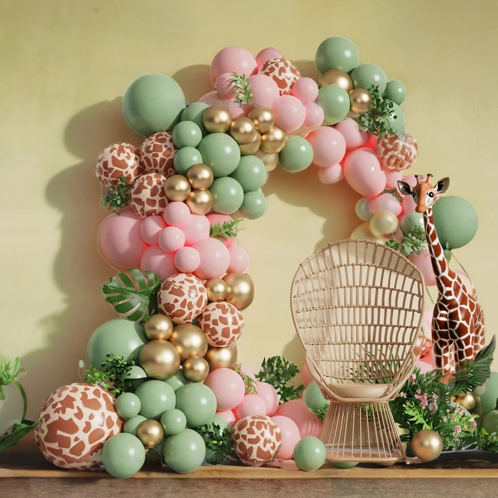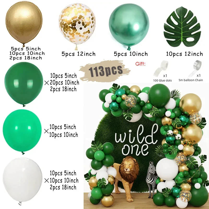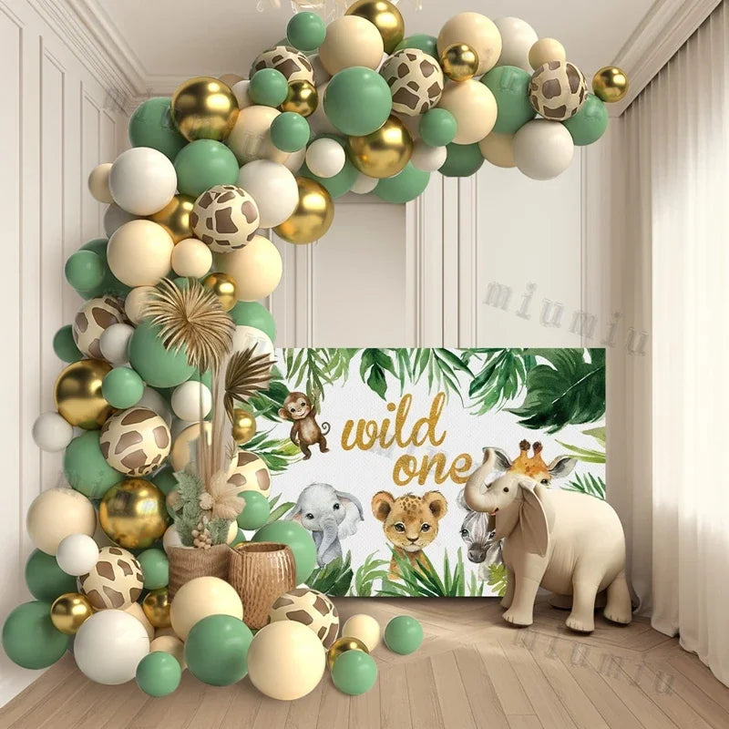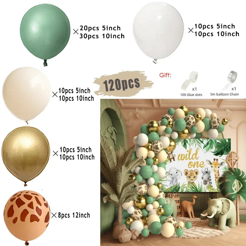 Jungle Safari Green Balloon Garland Arch Kit Kids Birthday Party Supplies Deer Pattern Gold Latex Ballons Baby Shower Decoration