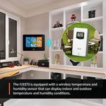 What's more, FJ3373 is equipped with a wireless temperature and humidity sensor that can display indoor and outdoor temperature, humidity data and barometric pressure tendency. Outdoor high /low temperature and frost alert.