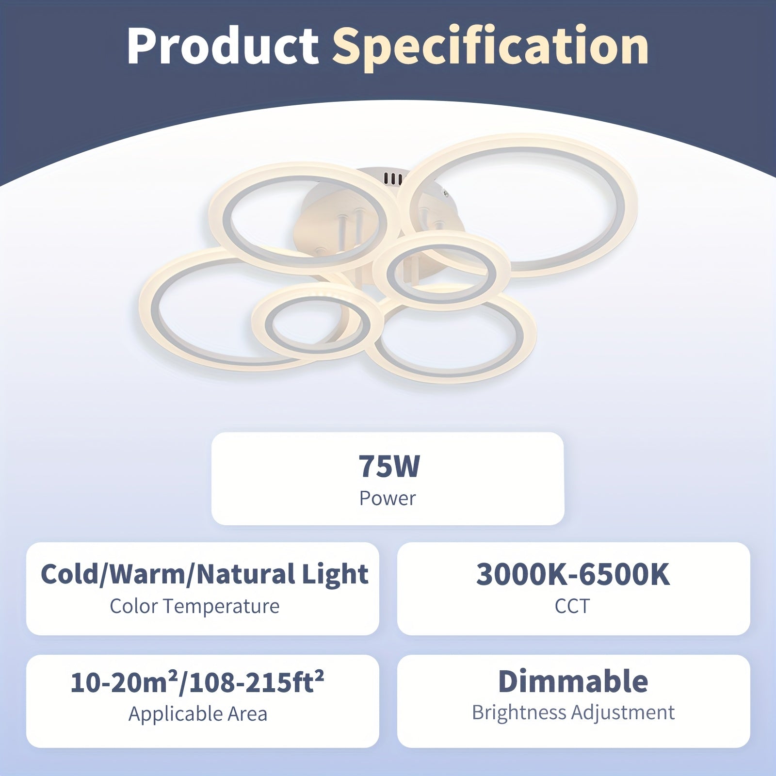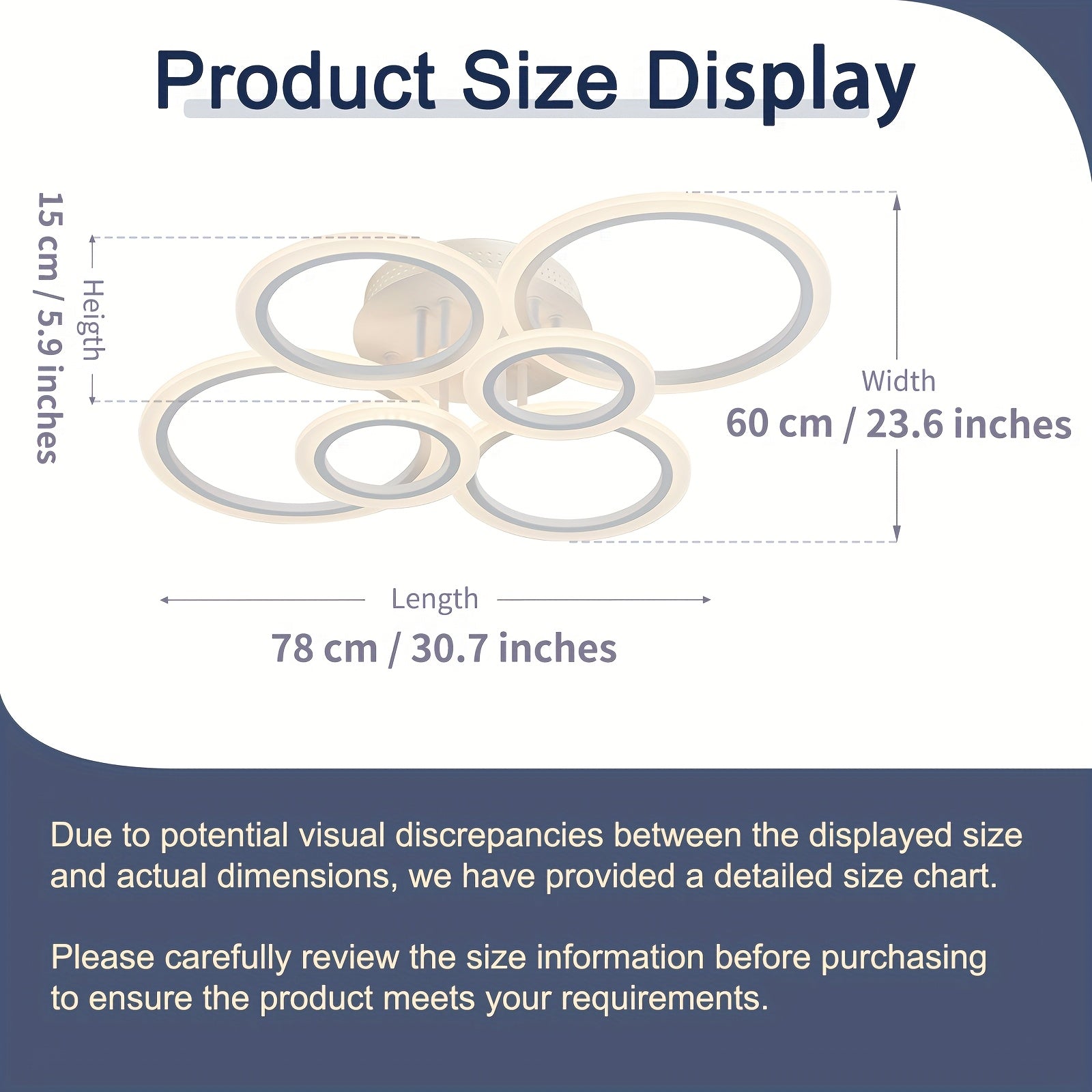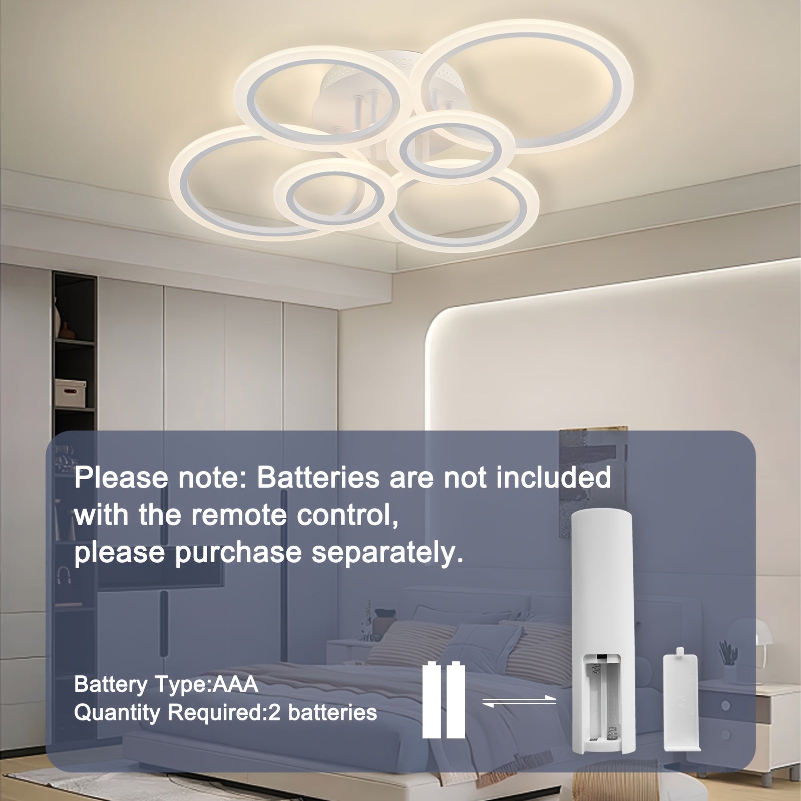 LED Ceiling Light Fixture, 6 Rings Flush Mount Ceiling Light Dimmable 78.74cm 75W Remote Control Dimmable 3000K-6500K, for Living Room, Kitchen, Bedroom, Office, IH-YH4