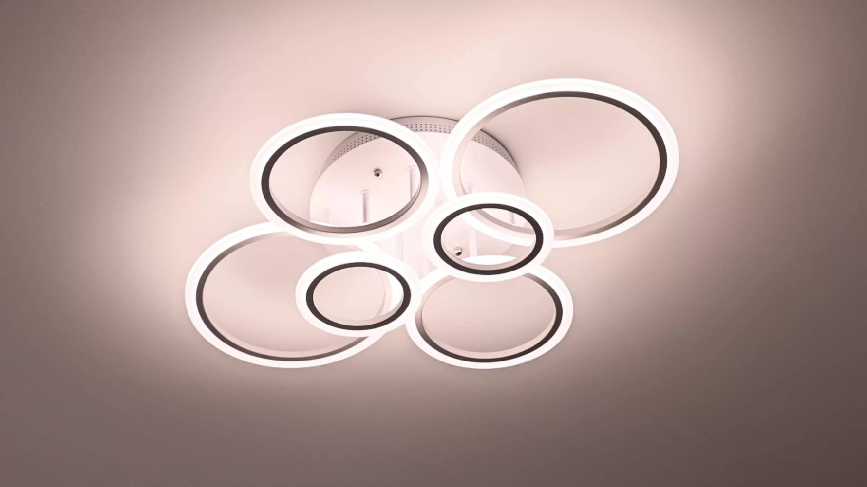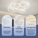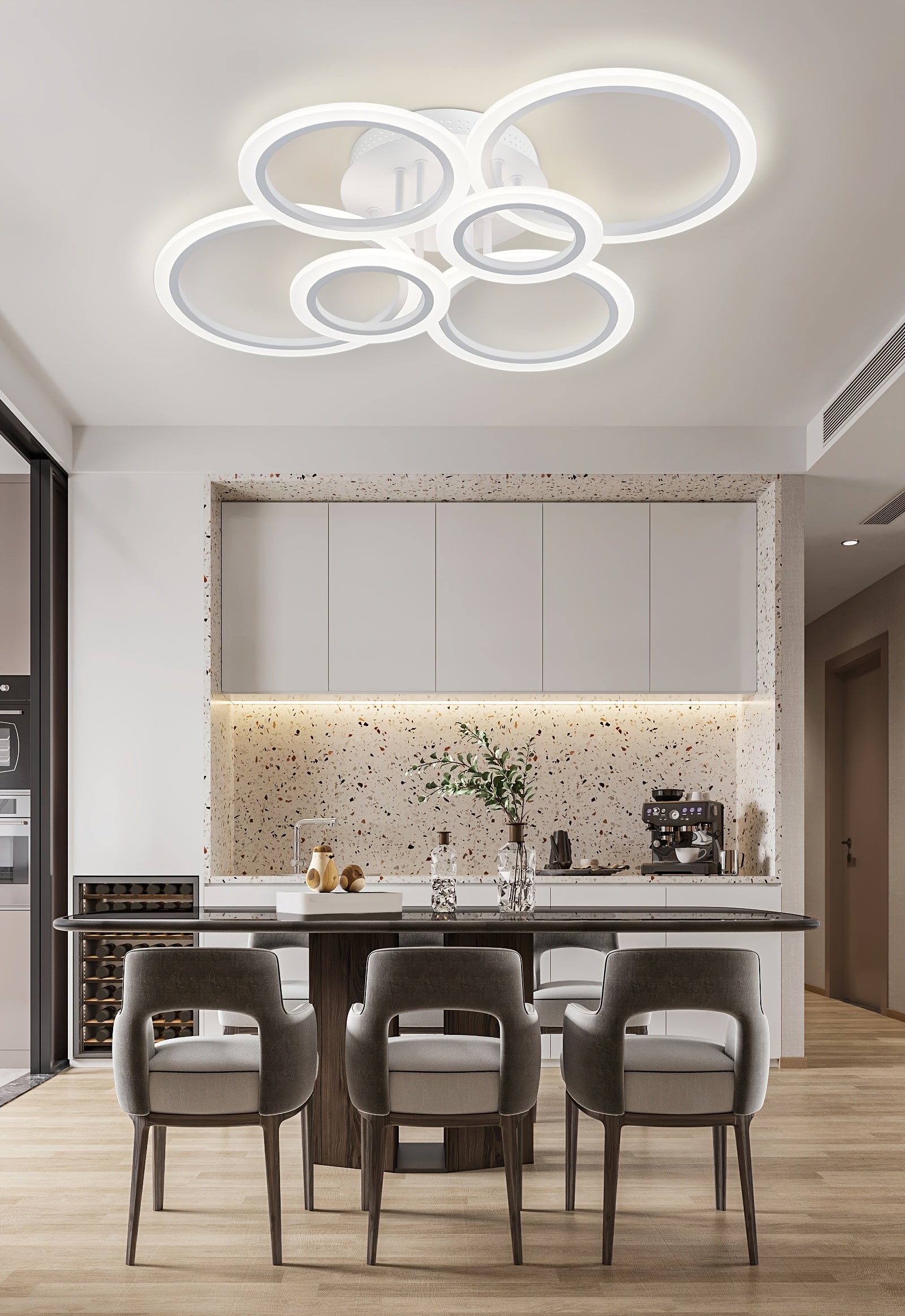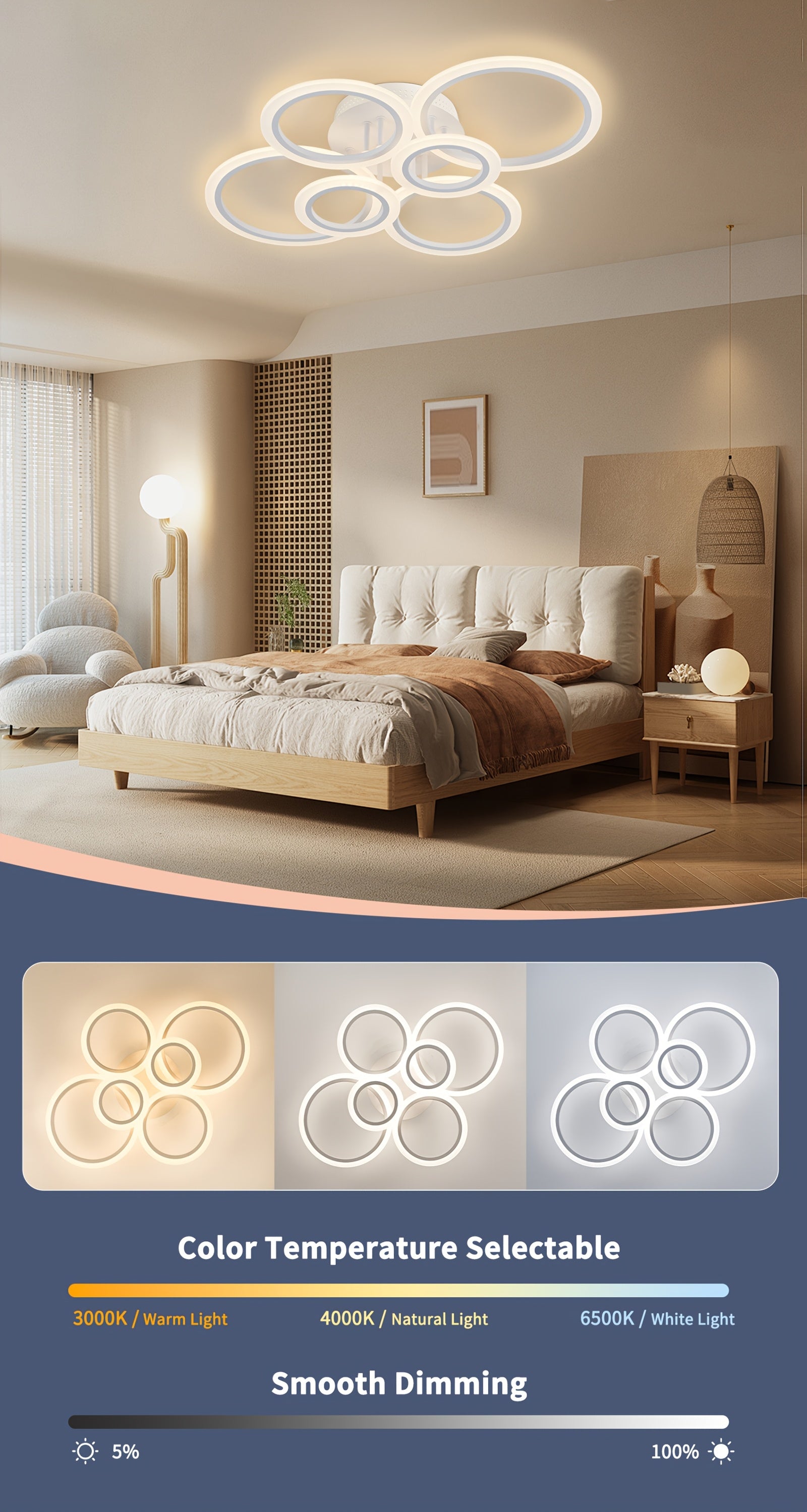 LED Ceiling Light Fixture, 6 Rings Flush Mount Ceiling Light Dimmable 78.74cm 75W Remote Control Dimmable 3000K-6500K, for Living Room, Kitchen, Bedroom, Office, IH-YH4