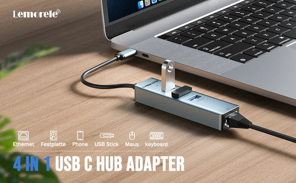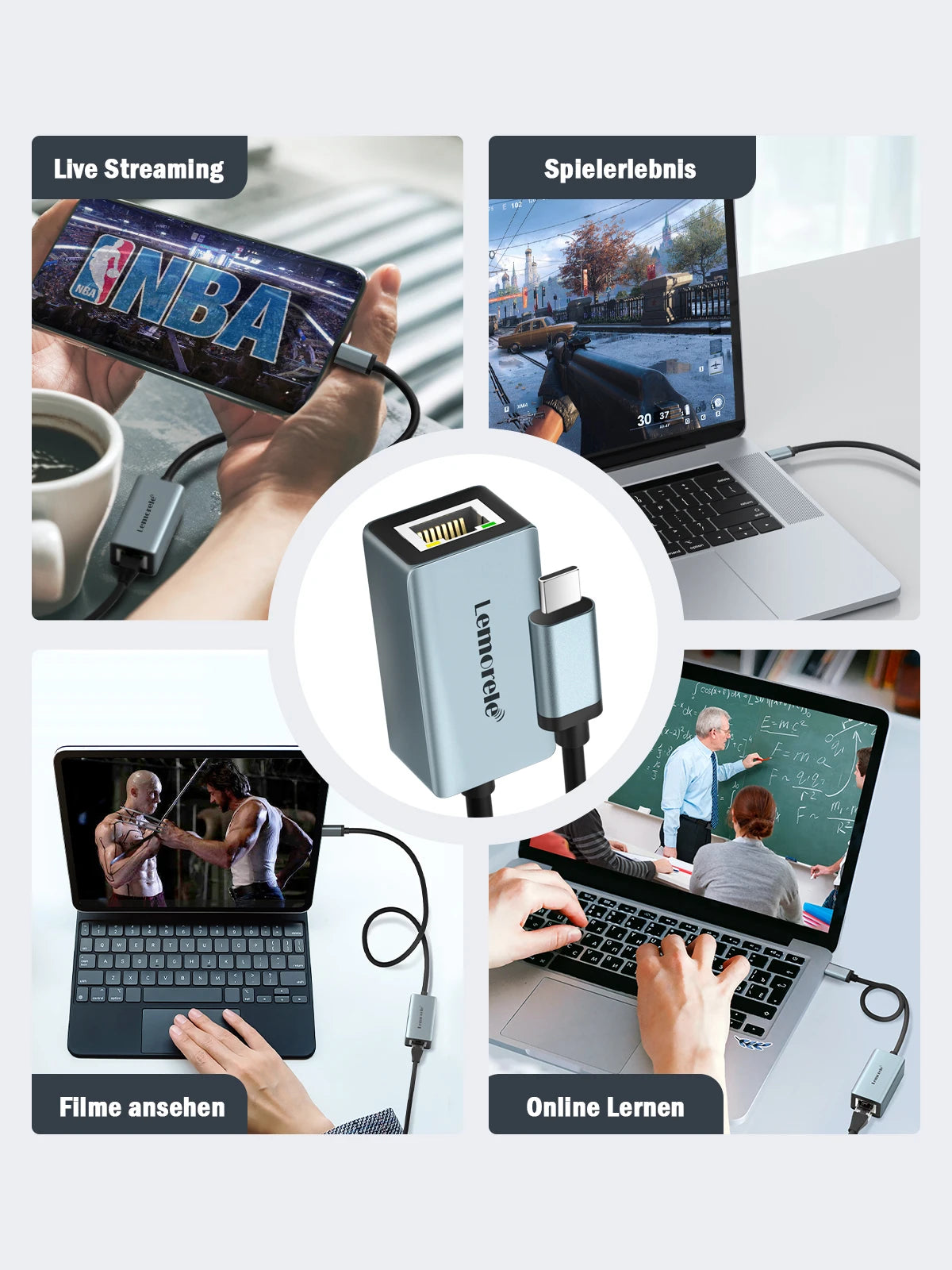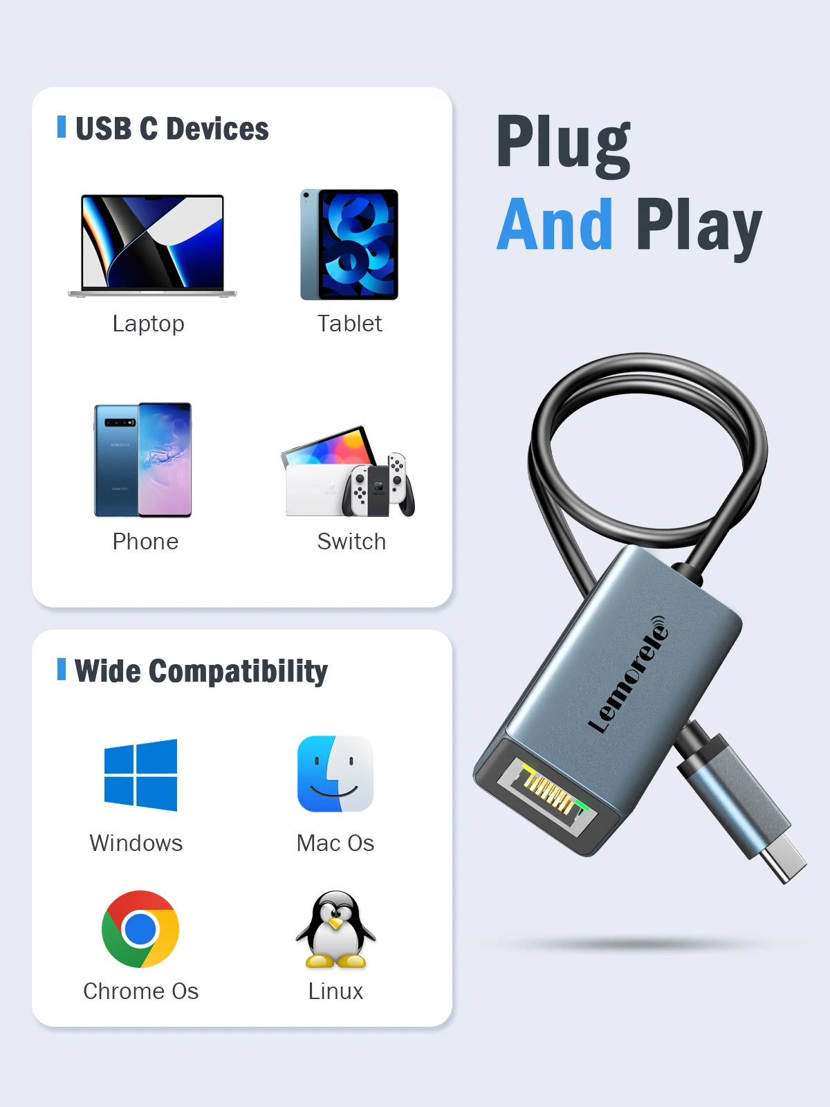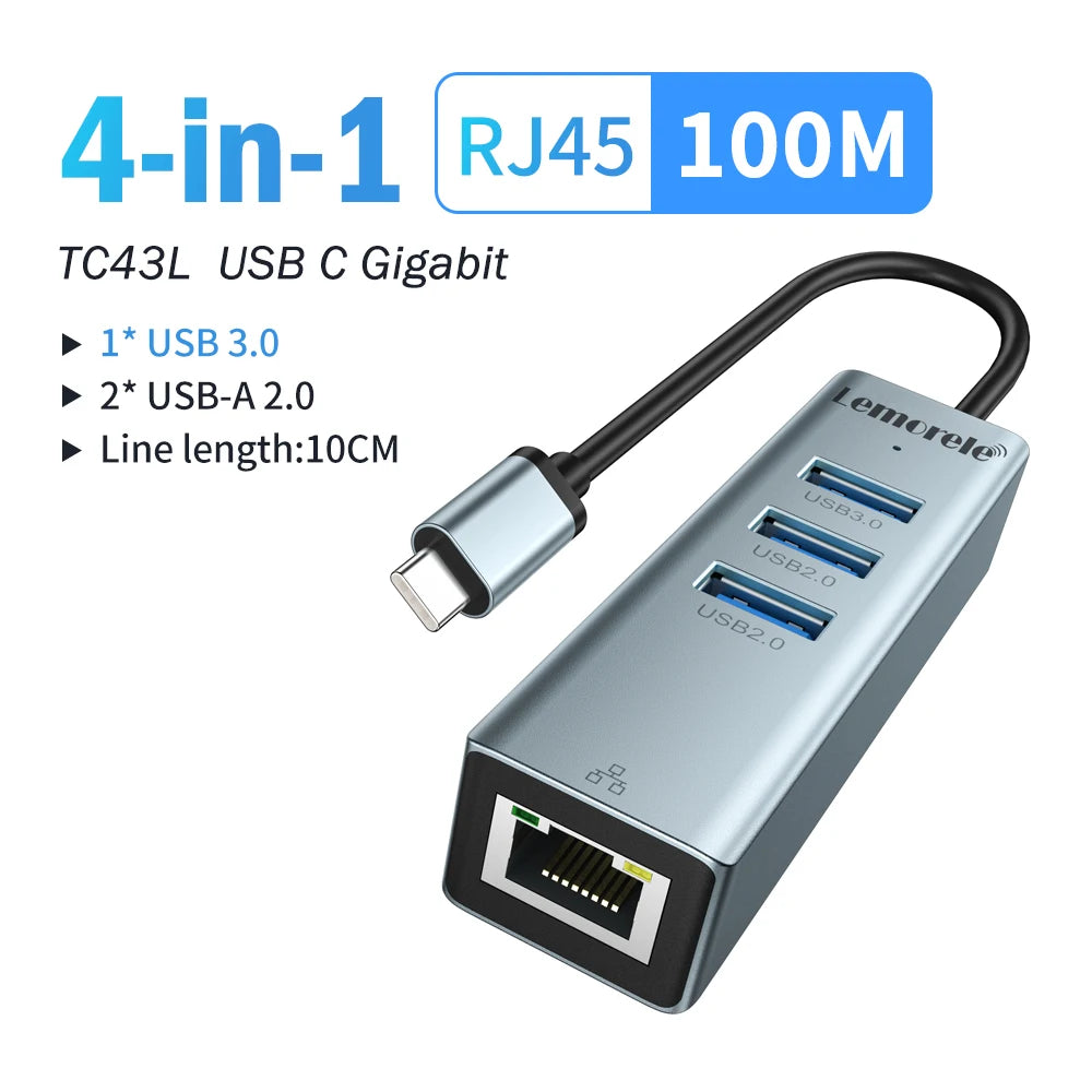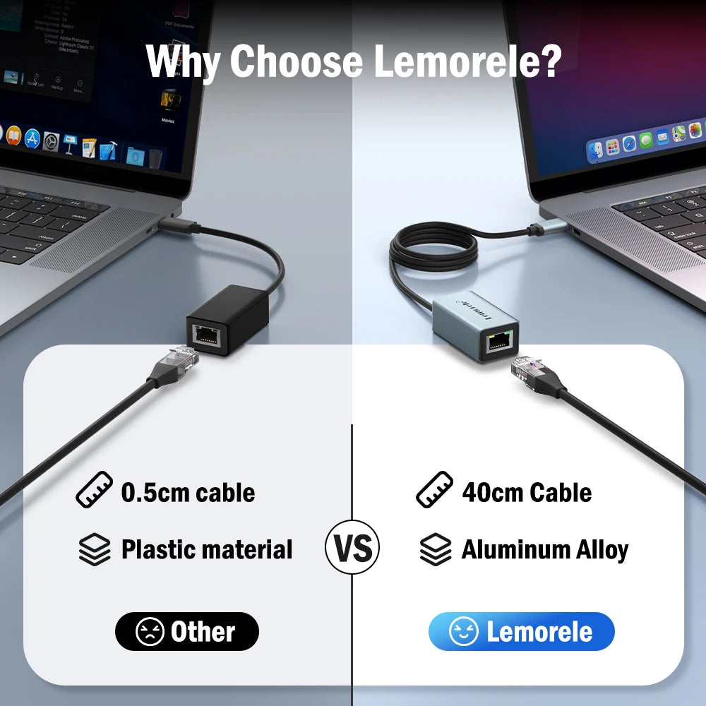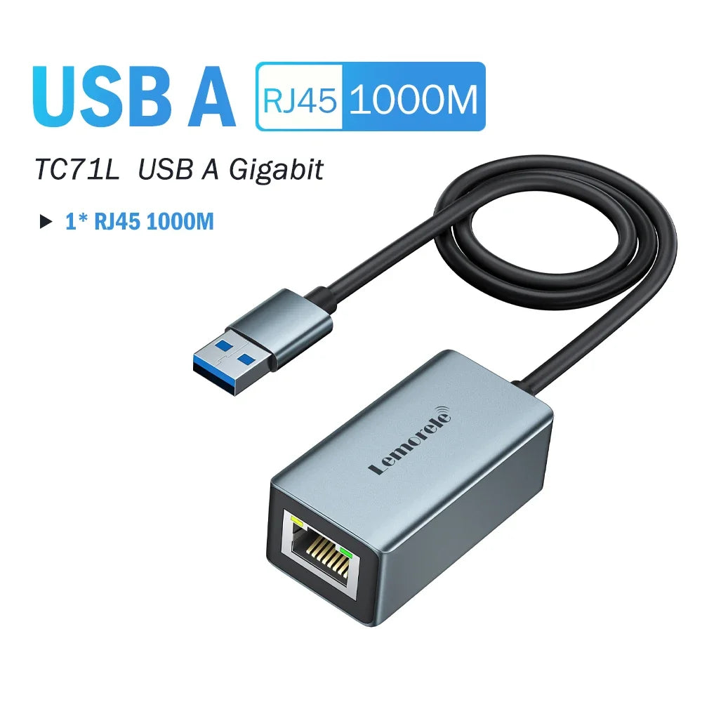 Lemorele TC48 USB Ethernet Adapter USB 3.0 Network Card for Macbook USB C to RJ45 Ethernet Adapter for PC Laptop Network Card