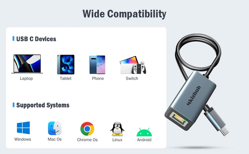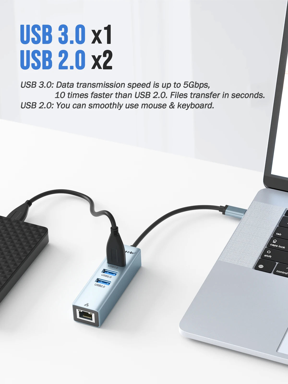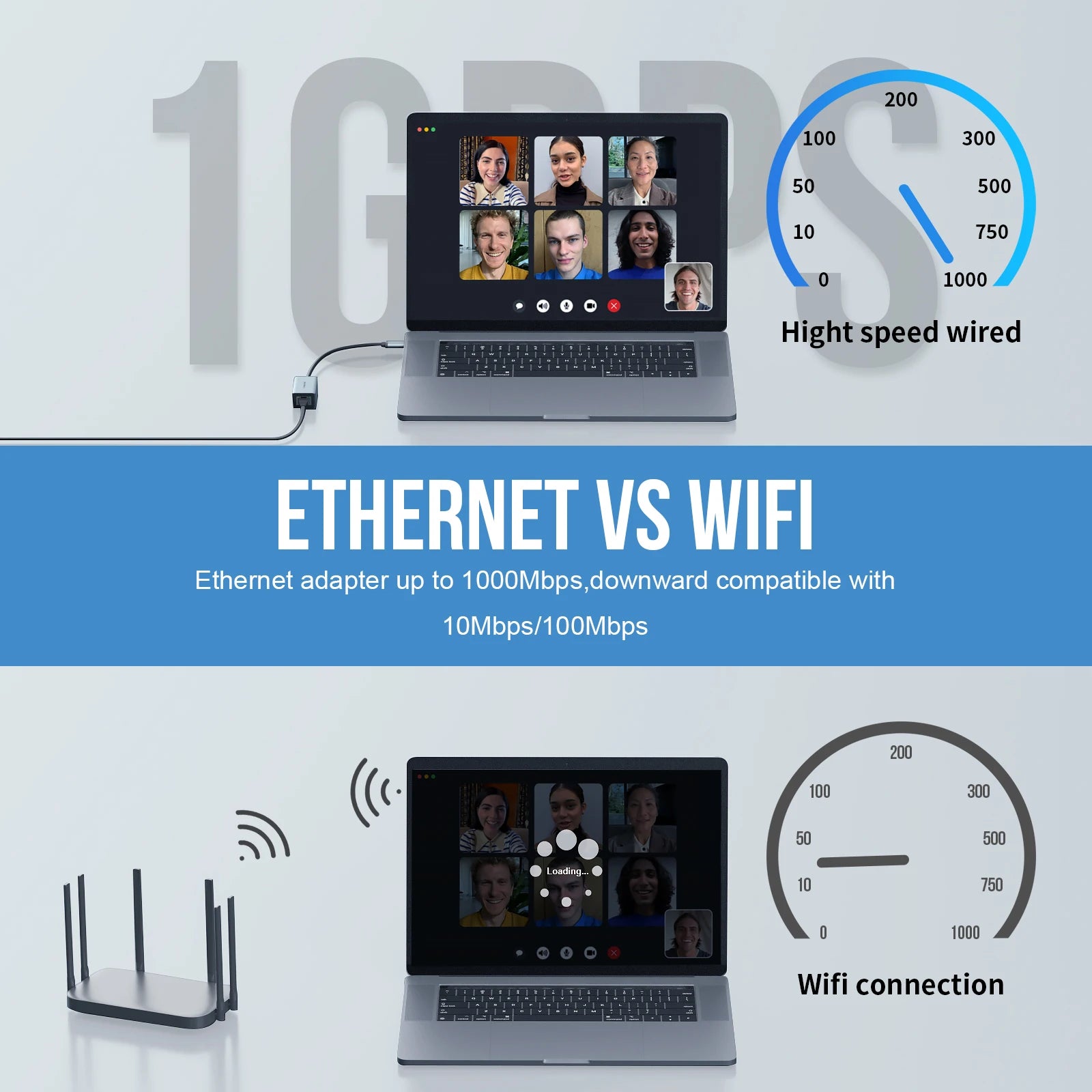 1.USB C to Gigabit Ethernet Provides up to 1000 Mbps Gigabit Ethernet connectivity that is backward compatible with 10Mbps / 100Mbps ultra-high speed networks and is faster and more reliable than most wireless connections.