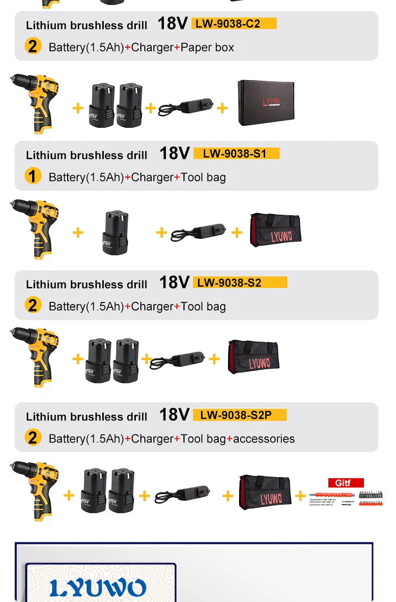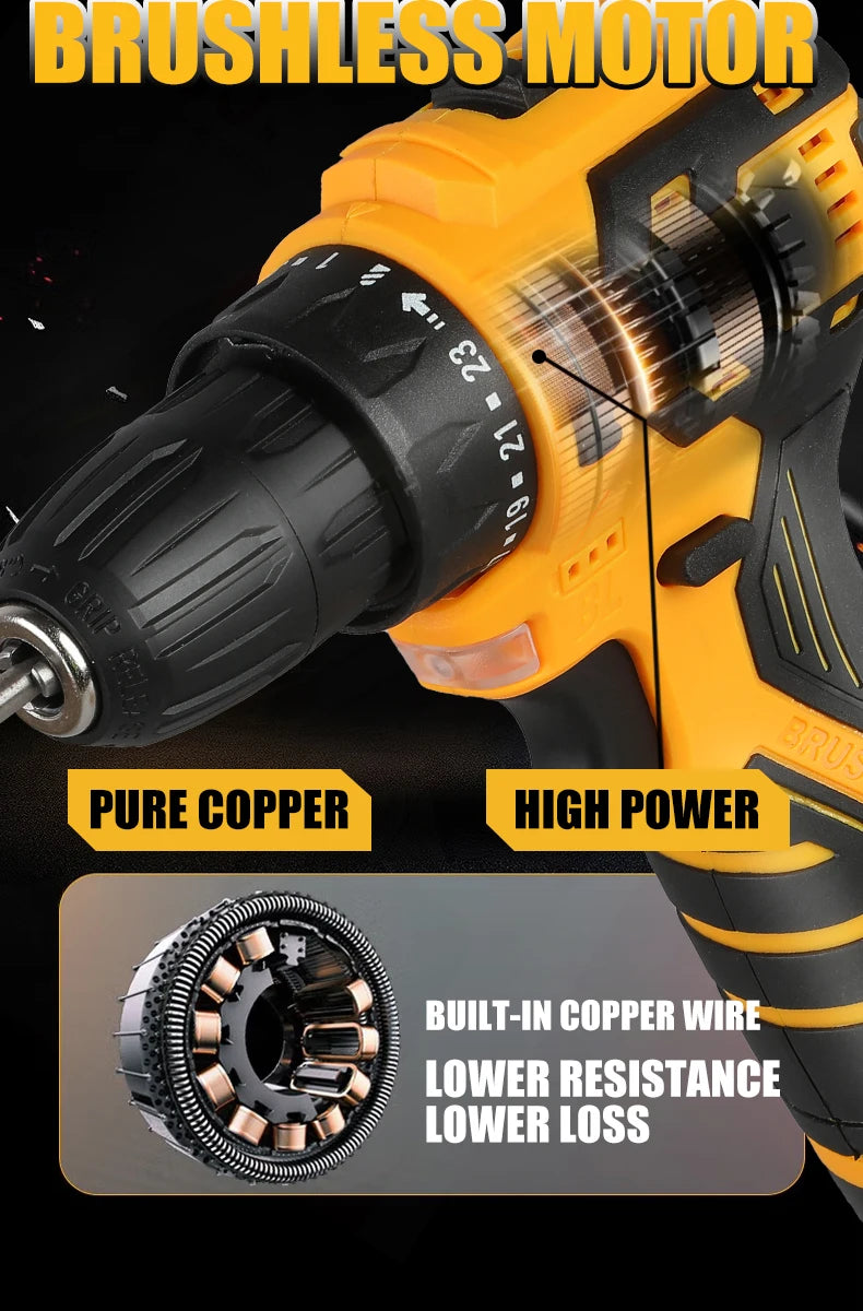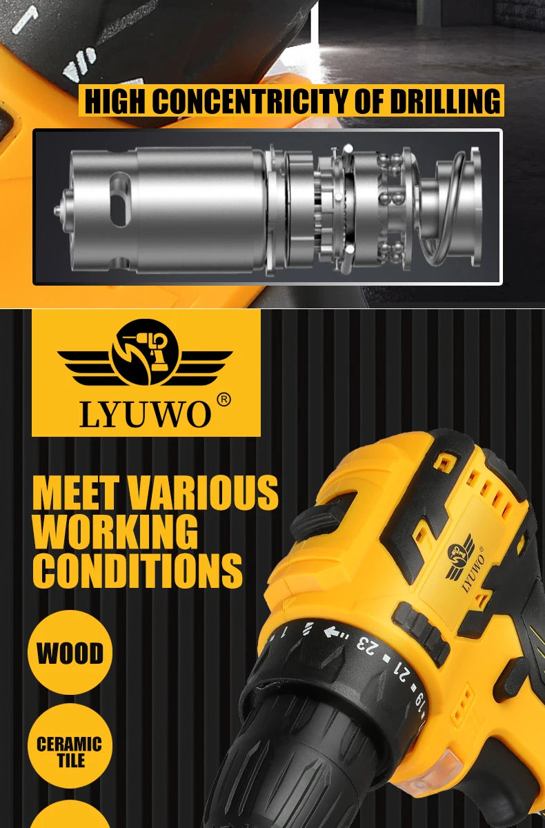 LYUWO 16.8V Brushless Electric Drill 35NM Cordless Drill Mini Electric Screwdriver Lithium Ion Battery Home Electric Drill