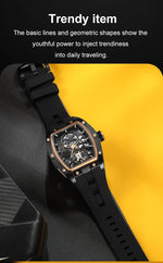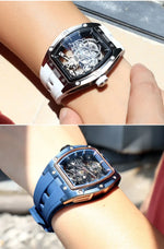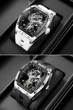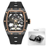 MEGIR Men's Automatic Mechanical Watch with Stainless Steel Case Silicone Band Skeleton Dial Waterproof Sport Wristwatch