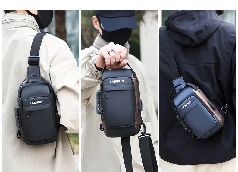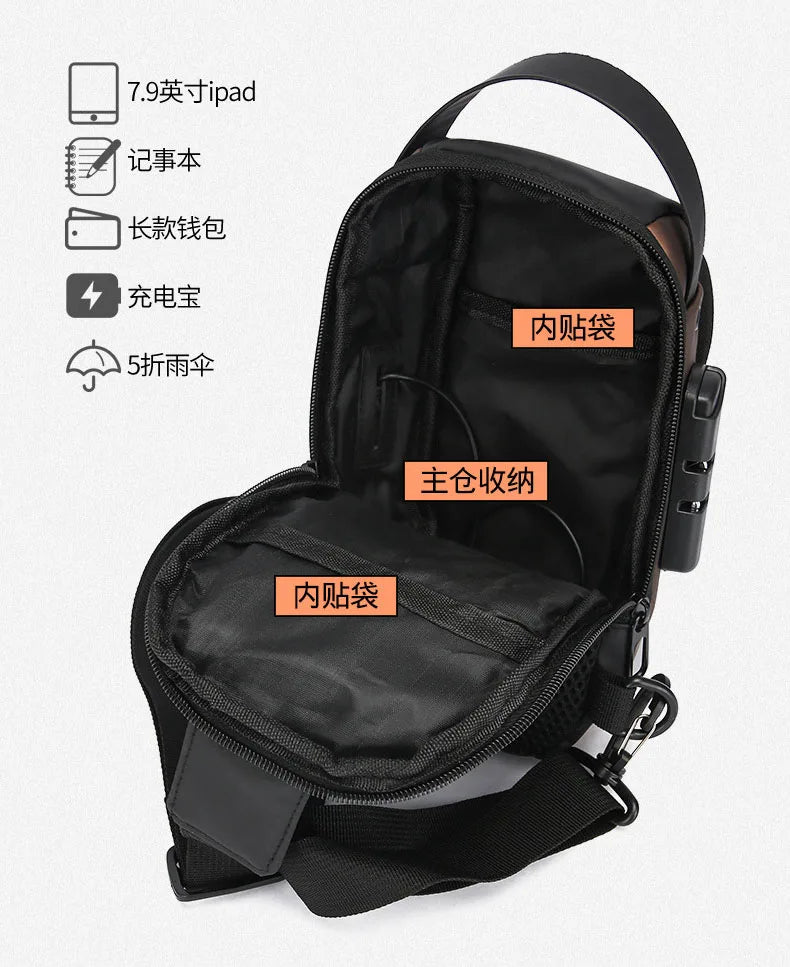 Men Anti Theft Chest Bag Shoulder Bags USB Charging Crossbody Package School Short Trip Messengers Bags Men's Oxford Sling Pack