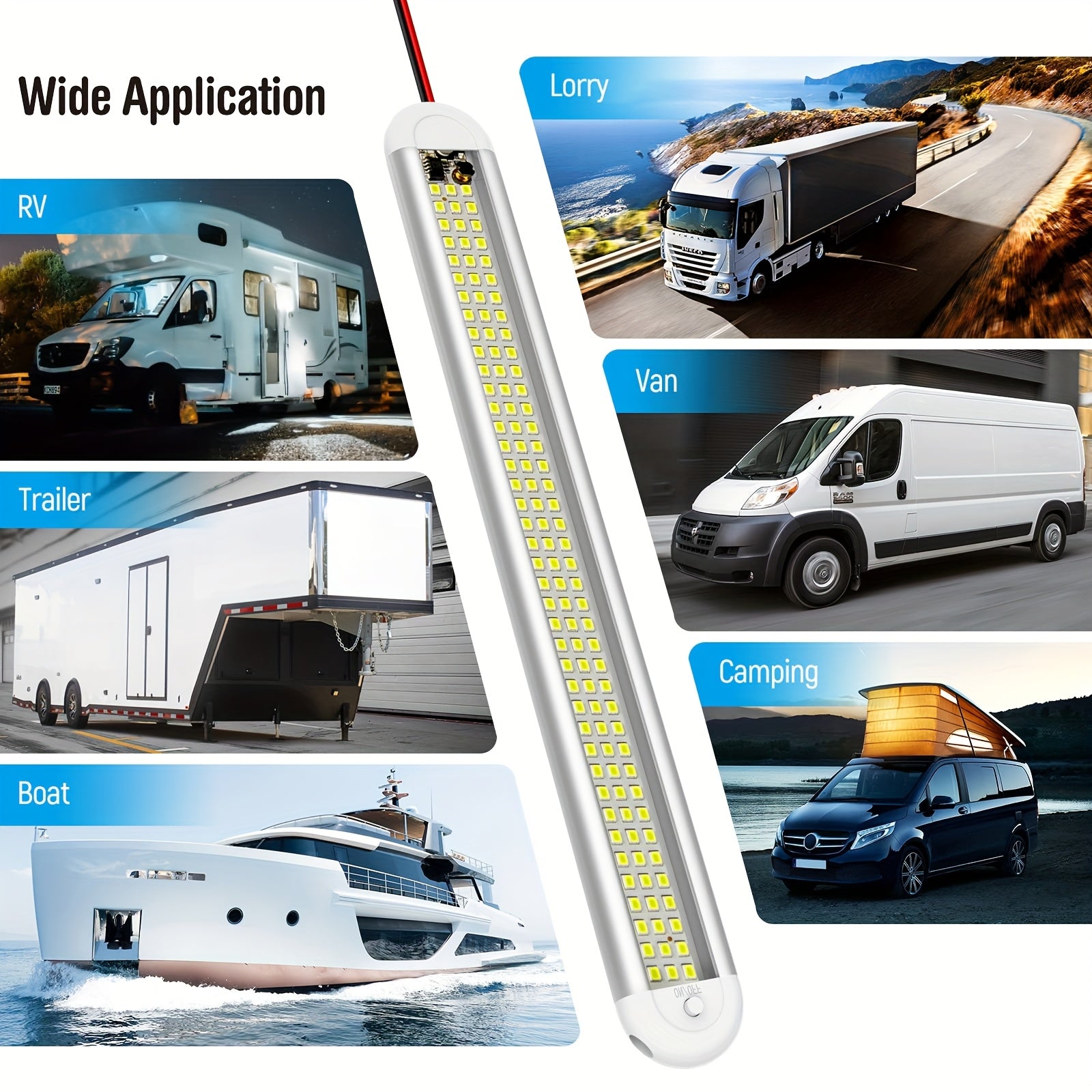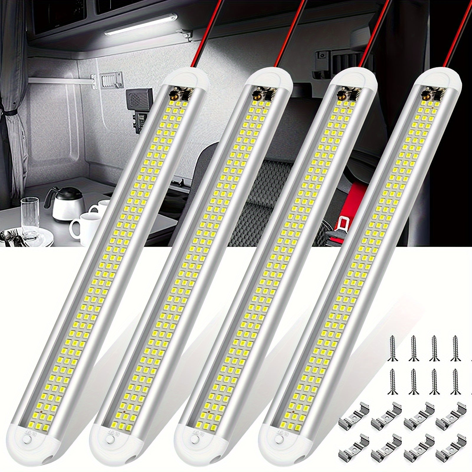 MERTTURM 12V LED Interior Light Bar with On/Off Switch, 120 LEDs 1500LM, White Housing, Mounting Brackets Included - Perfect for Enclosed Trailers, Cars, RVs, Vans, Trucks, Campers, Boats, Caravans - 4pcs