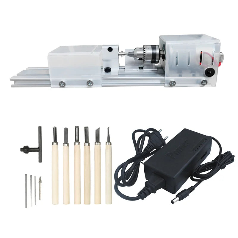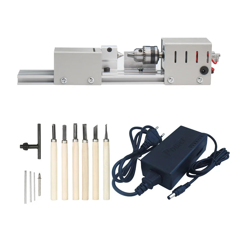 Mini Wood Lathe Machine DIY Woodworking Miniature Buddha Pearl Lathe Grinding Polishing Beads Wood Drill Rotary Tool 12-24VDC