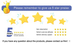 • We will send out order within 5 workdays. The delivery time will vary according to different countries and will be affected by weather, public holidays and so on. If order doesn't received in declare time, please contact us.