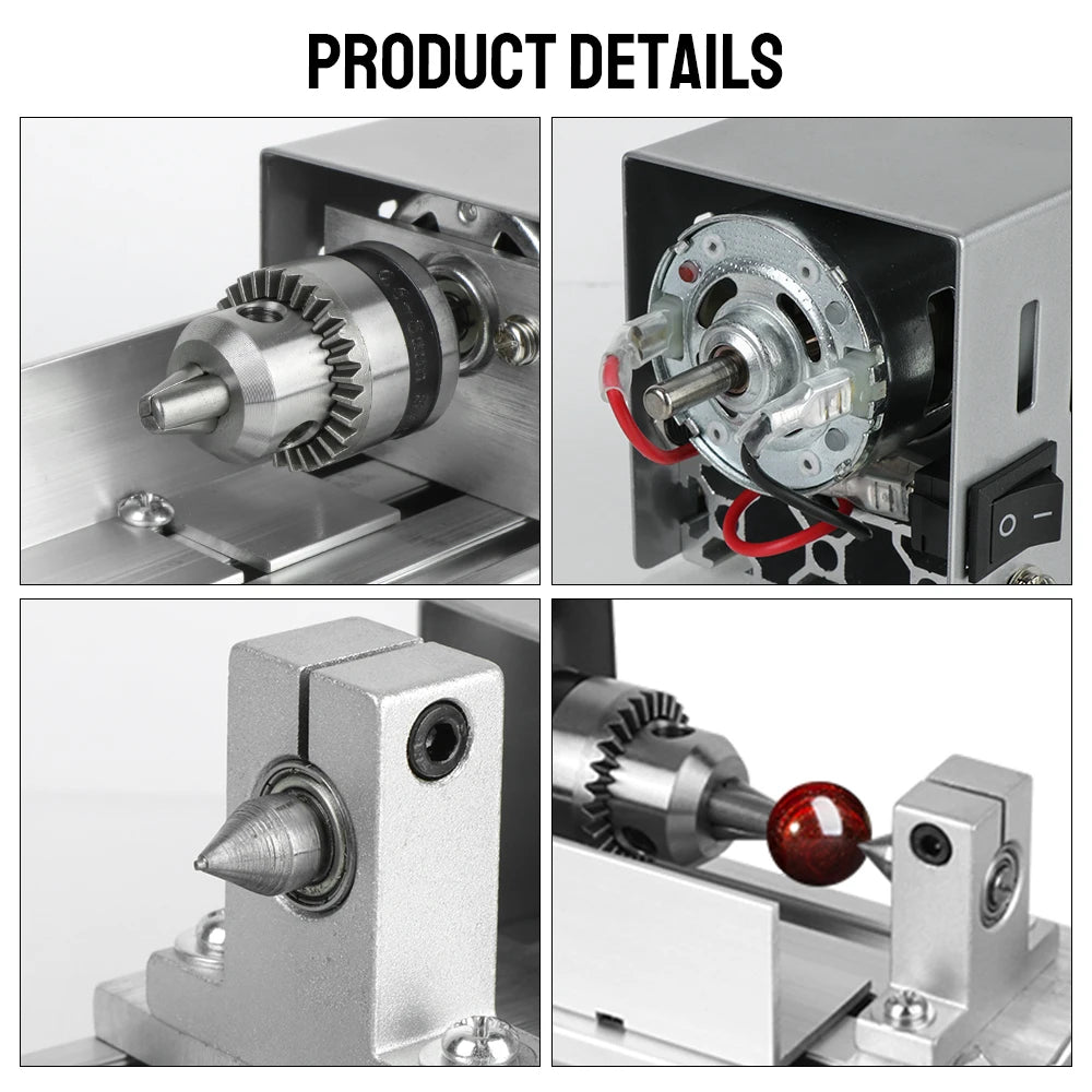 Mini Wood Lathe Machine Rotary Tool Miniature Buddha Pearl Lathe 12-24V DIY Woodworking Buddha Pearl Grinding Polishing