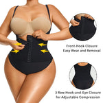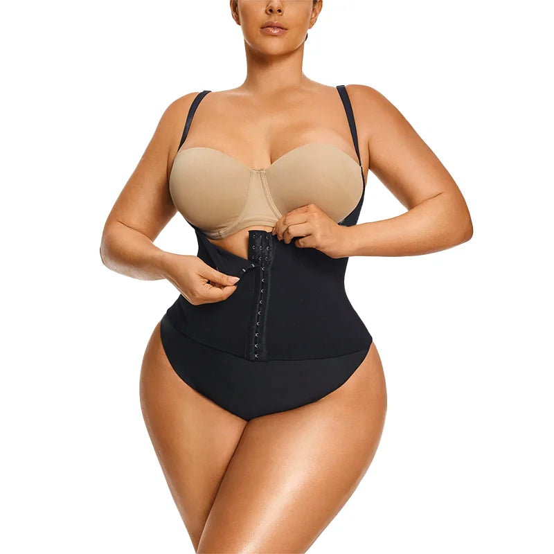 Features a convenient front-hook design for effortless wear, paired with adjustable back fasteners to customize compression. The tummy-control panel slims naturally while allowing comfortable breathing.