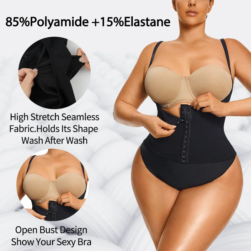 Thoughtfully designed with open bust area for your preferred bra (not included), offering flexibility for different support needs while maintaining a streamlined look.