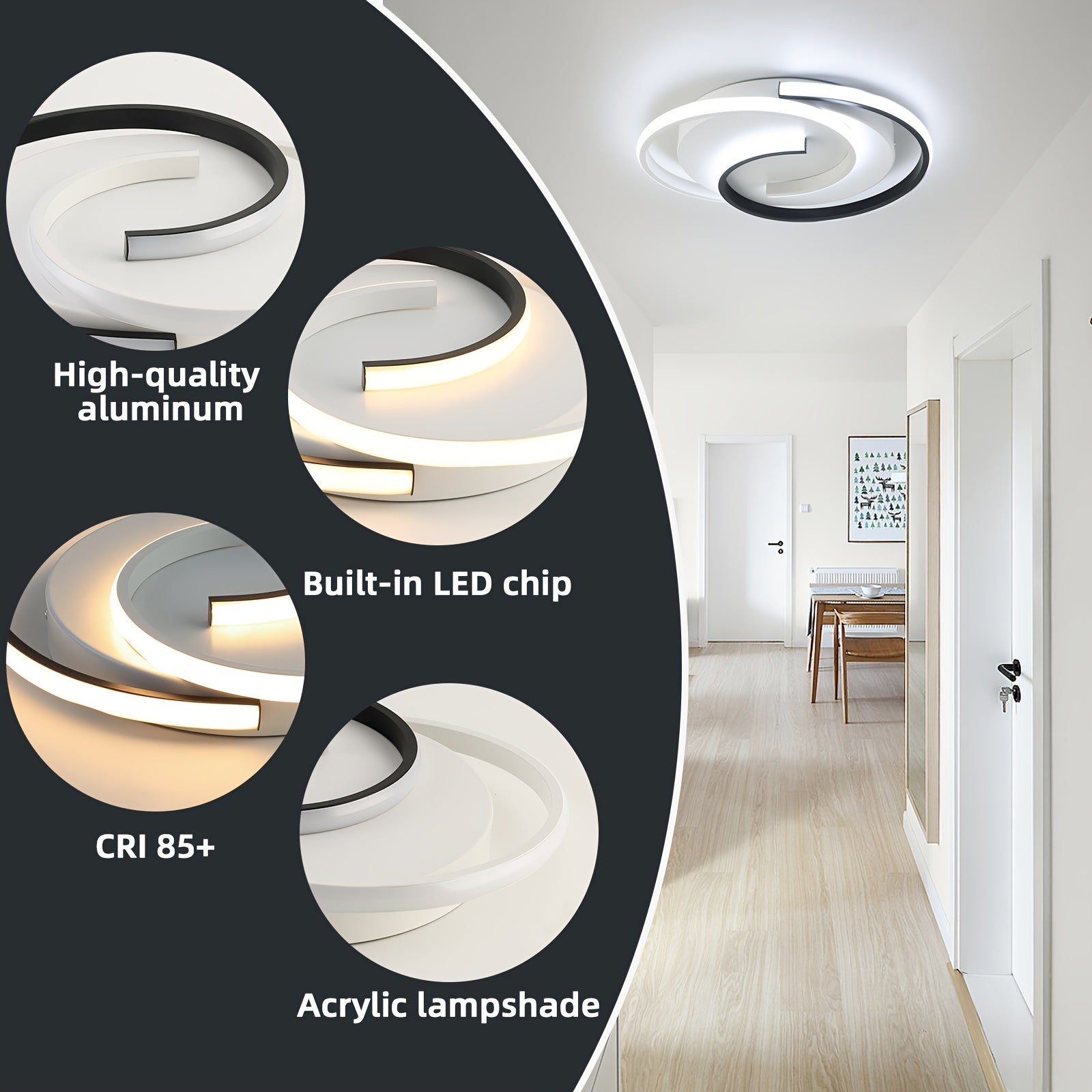 Modern LED Ceiling Light, 3000K/4000K/6000K, Black and White Round Bedroom Lamp, Energy-Saving, Switch Control, Matte Iron Finish, Half-Flush Mount, for Living Room, Bedroom, Office, 110V-240V