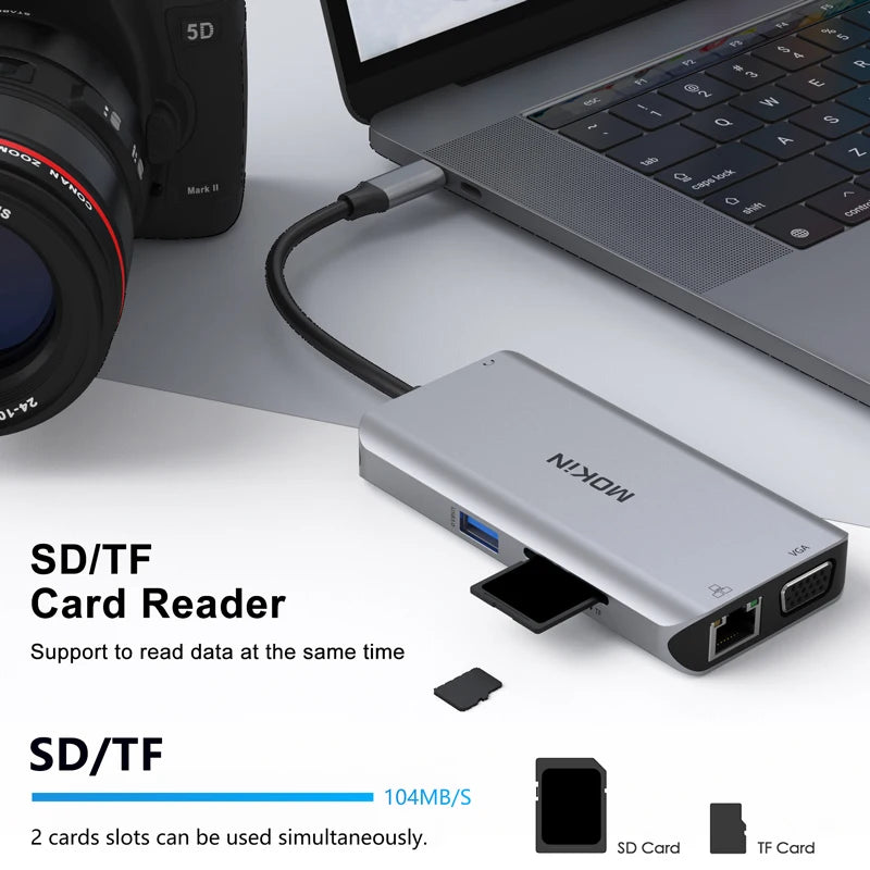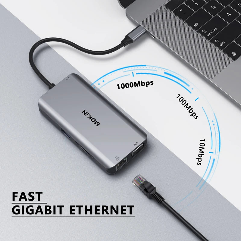 MOKiN USB C HUB 4K60Hz Type C to HDMI 4K DP 3 USB 3.1 Gigabit Ethernet PD100W Docking Station for MacBook Pro Air M2 M1 usb hub