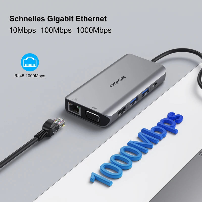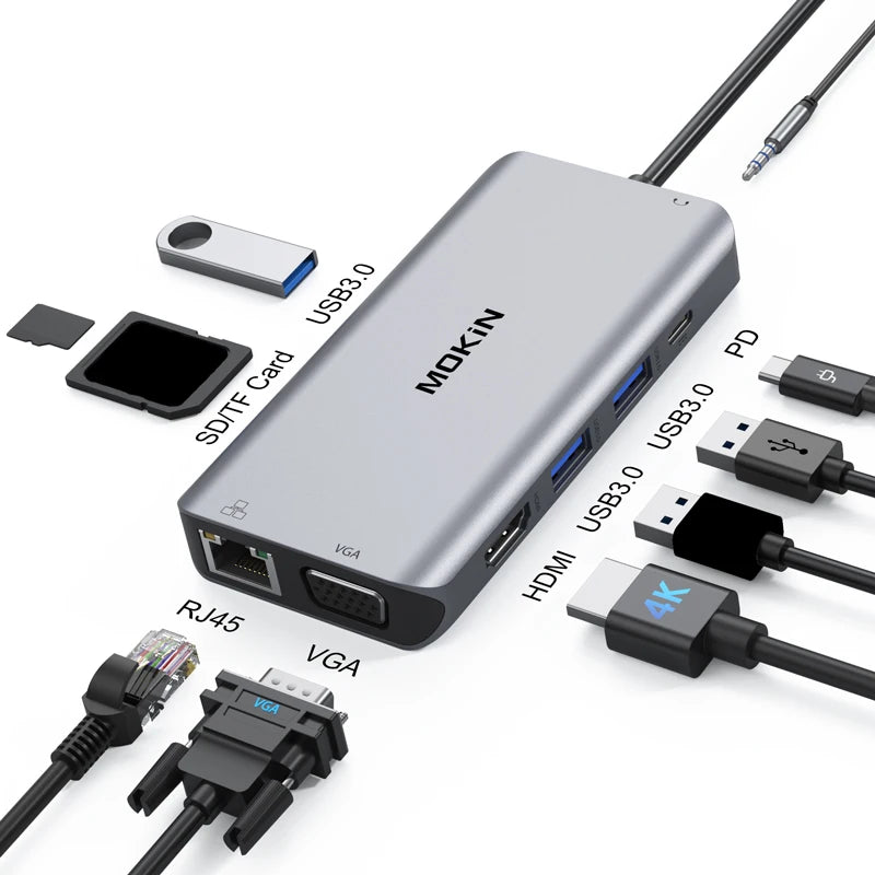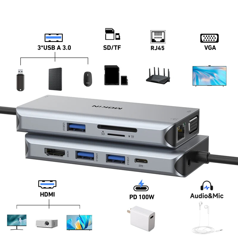 10 IN 1 🔥USB C to HDMI+VGA+3USB3.0+RJ45+Audio+SD/TF+PD🔥