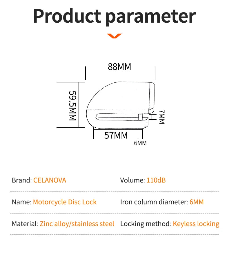 Press the lock core,it will be locked and you will hear the sound "DU", which means it is coming into alarm status,after 5 seconds,When the lock or vehicle is vibrated,the lock will give an alarm"DU DU DU" three sounds,when the lock is vibrated again,after 5 seconds,it will give an alarm and keep alarm with serial vibration.Eeach alarm will last for 10 seconds.